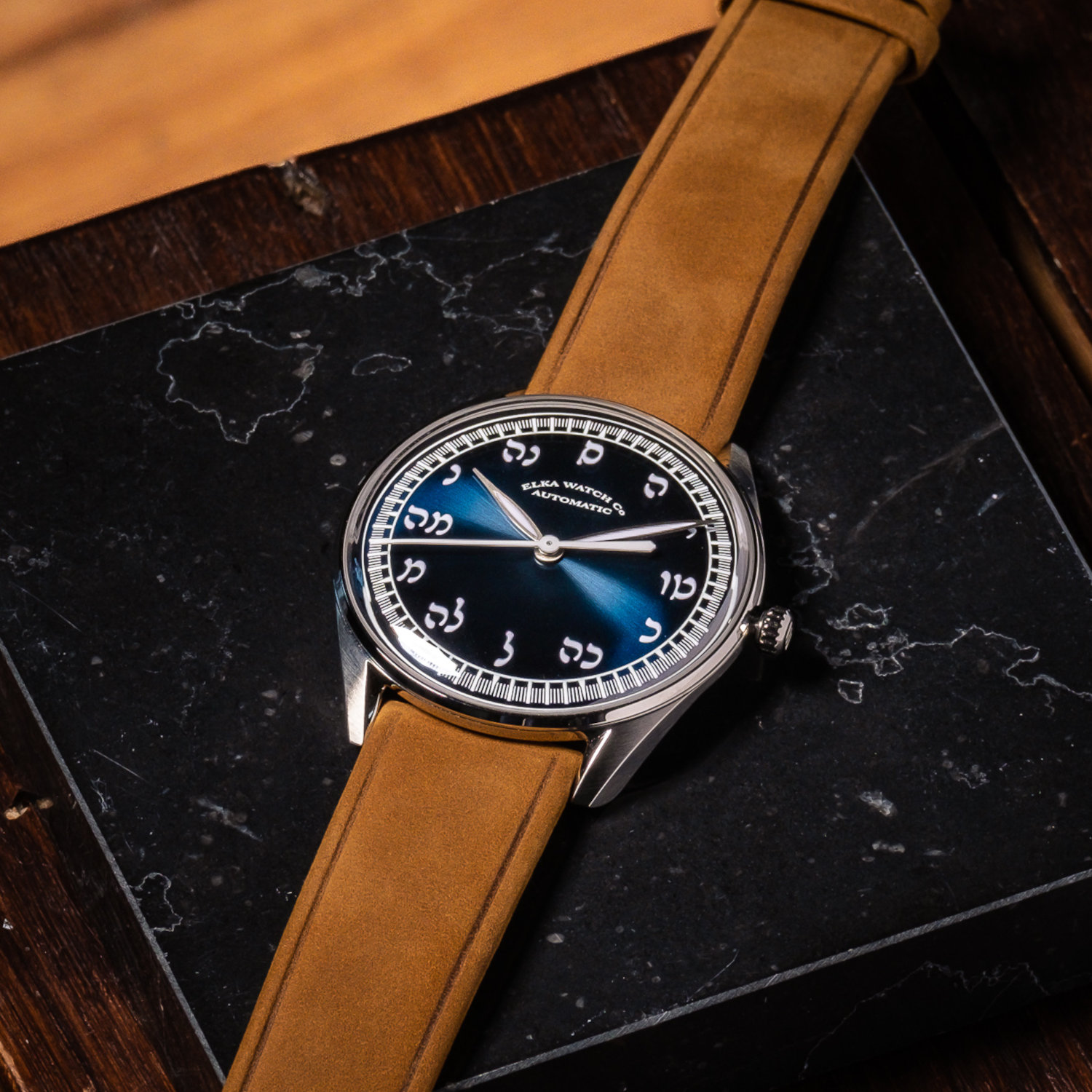 You see, it’s the dials that simultaneously divide and unite the Diversity Series, and with it, the name becomes a perfect fit. Each of the four versions has a deep blue sunray brushed dial. What sets each one apart though, is the type of font used for the numerals. You have a choice of Western Arabic, Eastern Arabic, Chinese or Hebrew signed dials, bringing the four cultural worlds together in a single watch collection. The dials all have a white printed minute track on the outer edge and are signed with the Elka Watch Company logo. Time is indicated with Dauphine-shaped hour and minute hands with a luminous insert and a white lacquered central seconds hand.