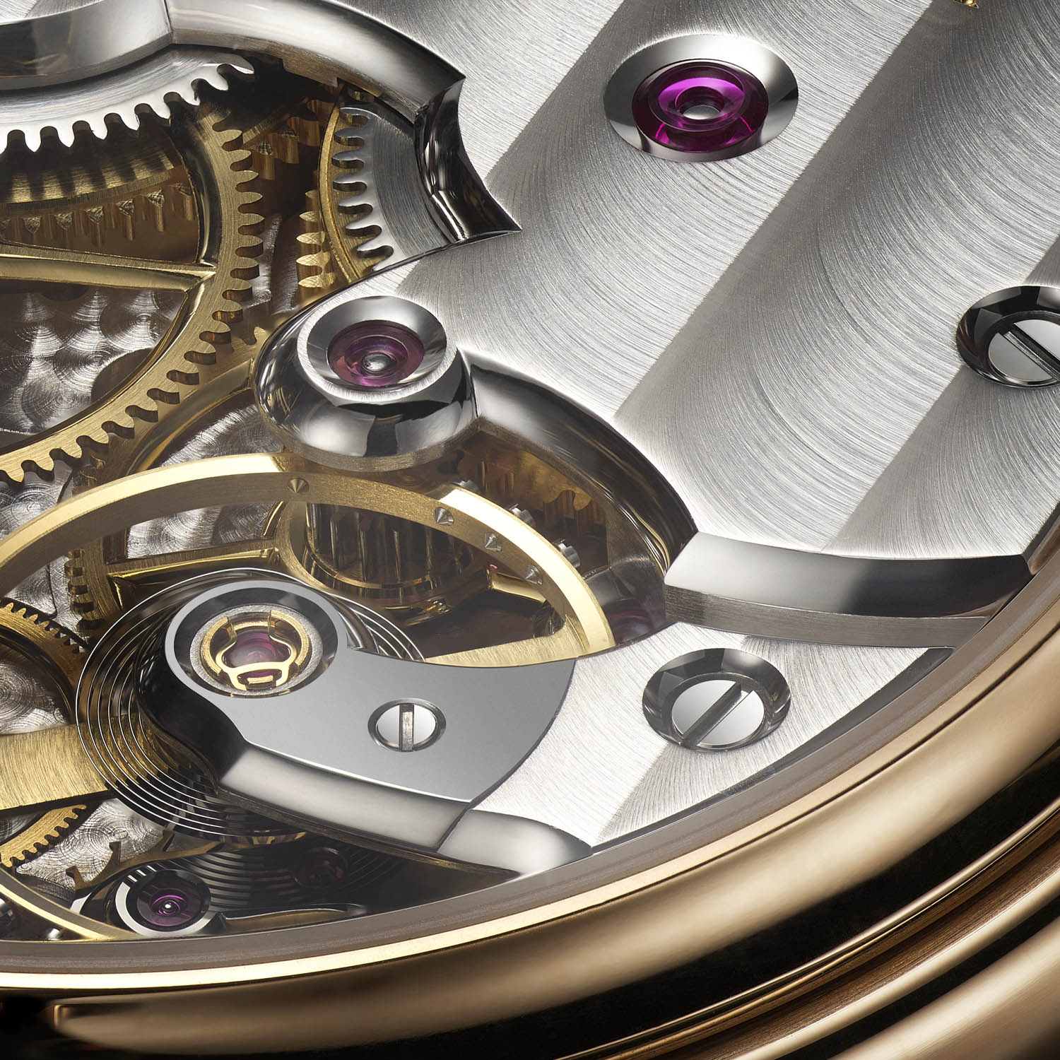Starting with the superbly elegant case, this too is more refined compared to the first Chronomètre Contemporain edition. It is available in 5N rose gold or 950 platinum and measures a compact 38mm in diameter and 8.75mm in height. It is constructed in-house, overseen by case-making expert Jean-Pierre Hagmann, using traditional techniques only (i.e. hand-operated machines and tools). A total of 15 individual components make up the exterior of the Akrivia RRCC II. Every aspect of it has received small tweaks to perfect the balance and ergonomics. Examples of the new geometry of the case are the slightly slimmer and elongated lugs and a small increase in the diameter of the hand-filed crown.