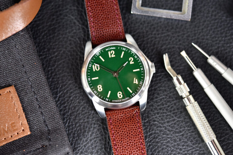 Just last year we visited a fascinating young independent watchmaking company, set up in an old carpet factory in Glasgow, Scotland. This brand goes by the name of anOrdain and has made a name for itself through a series of well-crafted and fun time-only watches. Things started with the Model 1 and vitreous enamel dials, which continued into the more robust and sportier Model 2. Displaying real expertise in making very attractive enamel dials in a range of colours and styles. The craft is extremely delicate, as any mistake in building up the multiple layers takes renders a dial useless. But anOrdain isn’t deterred by that, and in fact, introduces a new model to the portfolio today. Launching with Hodinkee, this is the anOrdain Model 3 Sunburst, with a rather special and gorgeous new style of dial!