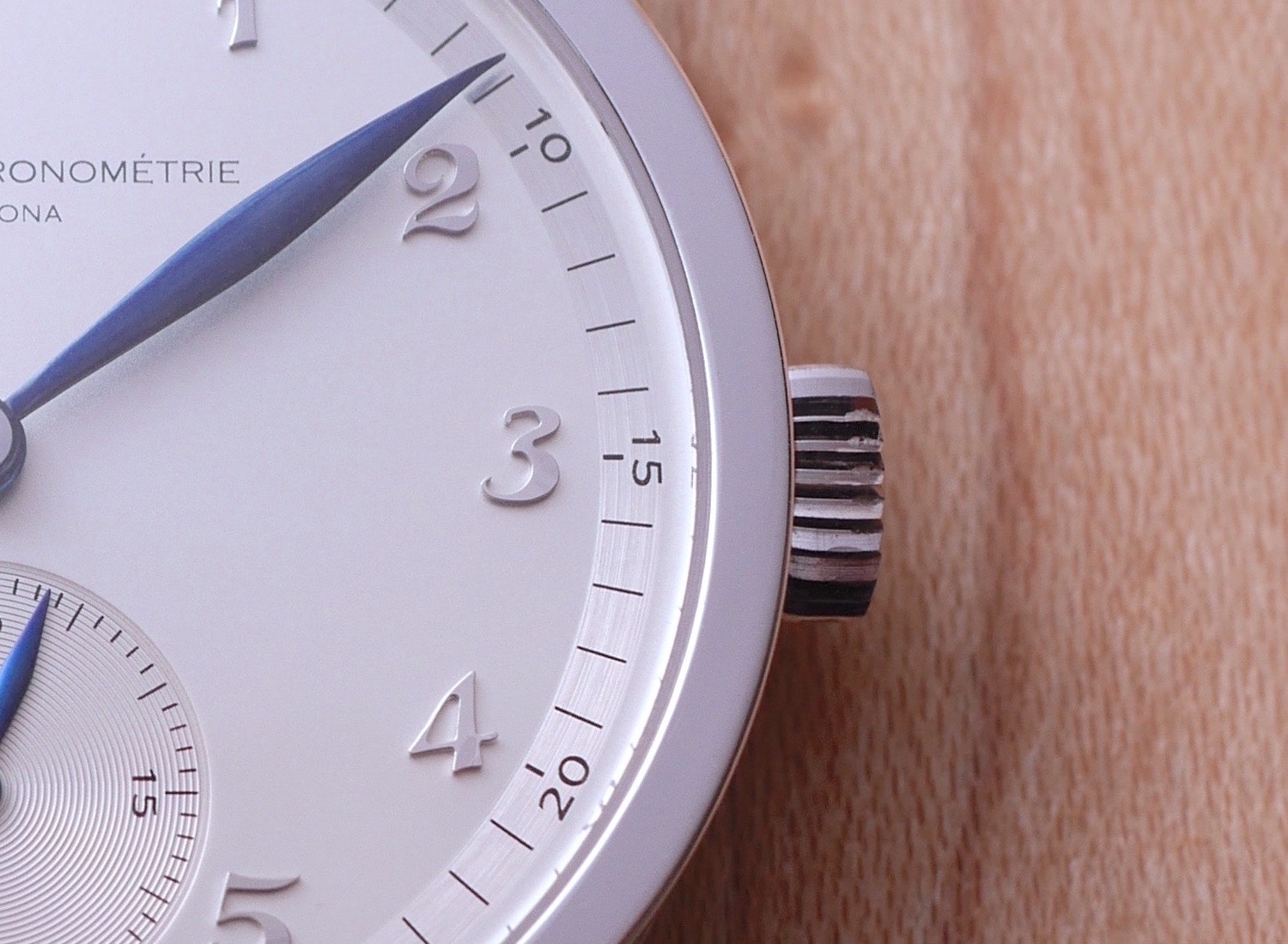 This Barcelona-based brand (indeed, far away from the Swiss mountains) creates unique watches by hand – and when they say by hand, it means without the use of modern machines, such as CNC. Moebius Rassmman, a watchmaker with more than 20 years of experience, and Santiago Martínez, a collector and vintage watch dealer expert in Patek Philippe, the two co-founders of Atelier de Chronométrie, only use traditional design cues, traditional manufacturing processes and use vintage Omega movements, entirely restored and remade, to power their watches. Relevant, from A to Z.