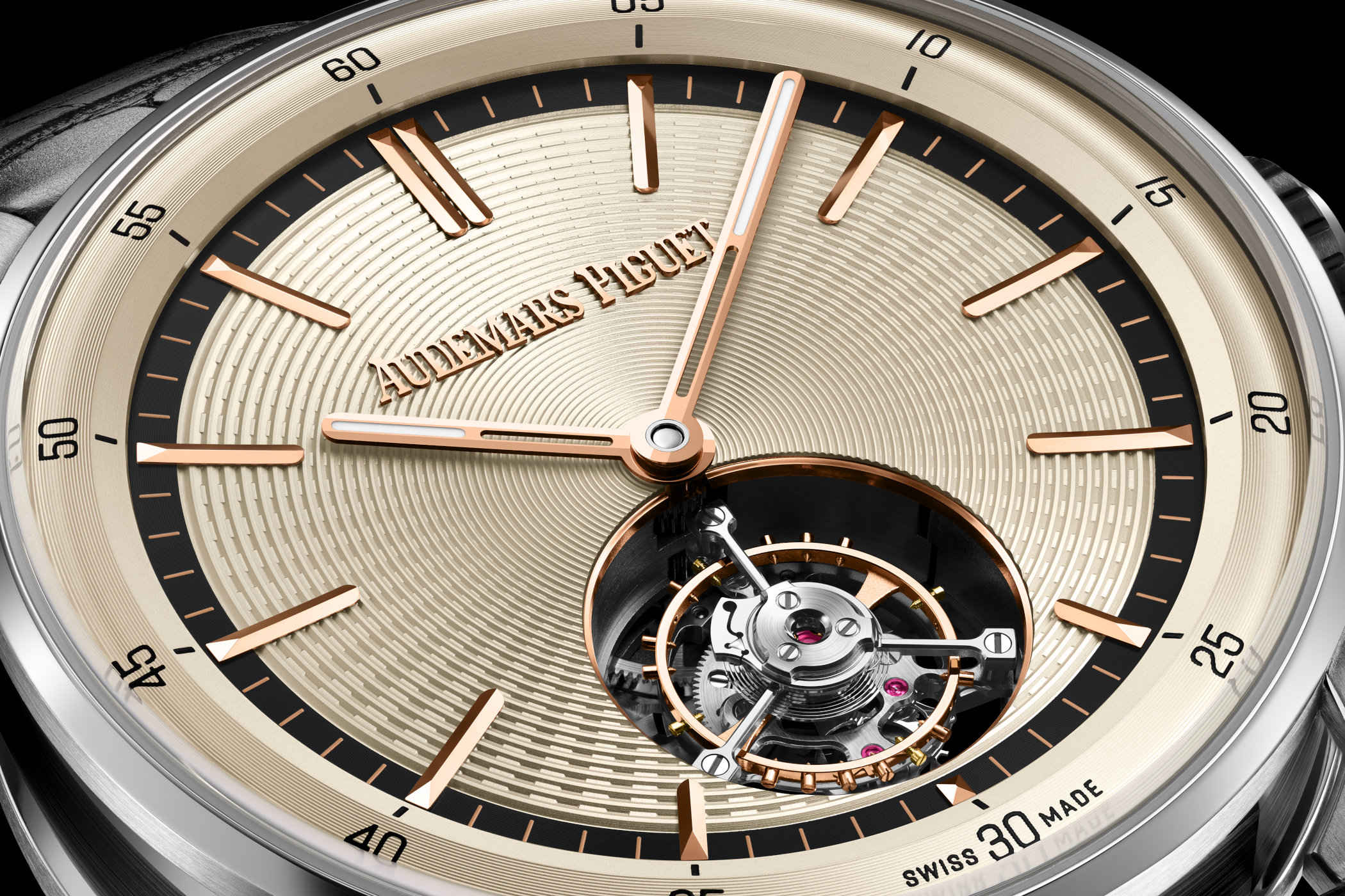 Ivory tones soften AP´s modern tourbillon classic.