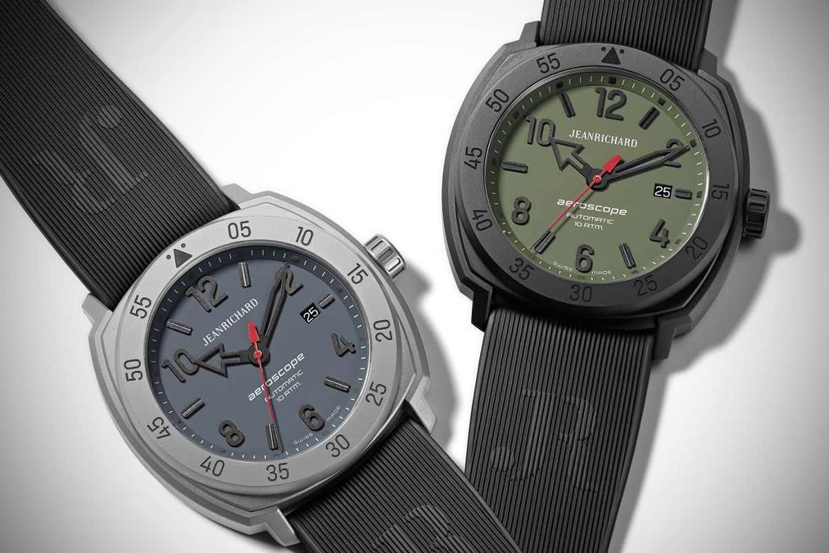 The JeanRichard Aquascope 3-hand is priced at 2.950Eur (including EU taxes) in titanium with a grey dial and 3.750Eur (including EU taxes) in black-PVD titanium with a green dial.