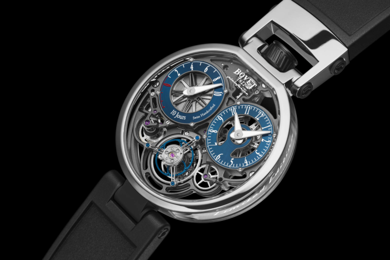 The Bovet x Pininfarina Aperto 1 comes with two separate rubber straps, both fitted to a sandblasted titanium pin buckle. Switching one for the other is a breeze thanks to the patented Amadeo interchangeability system that’s built into the lug sections of the case. This highly technical piece is not limited by number but given Bovet’s usual way of working, (annual) production will be on the low side. The price is set at CHF 48,800 (before taxes).