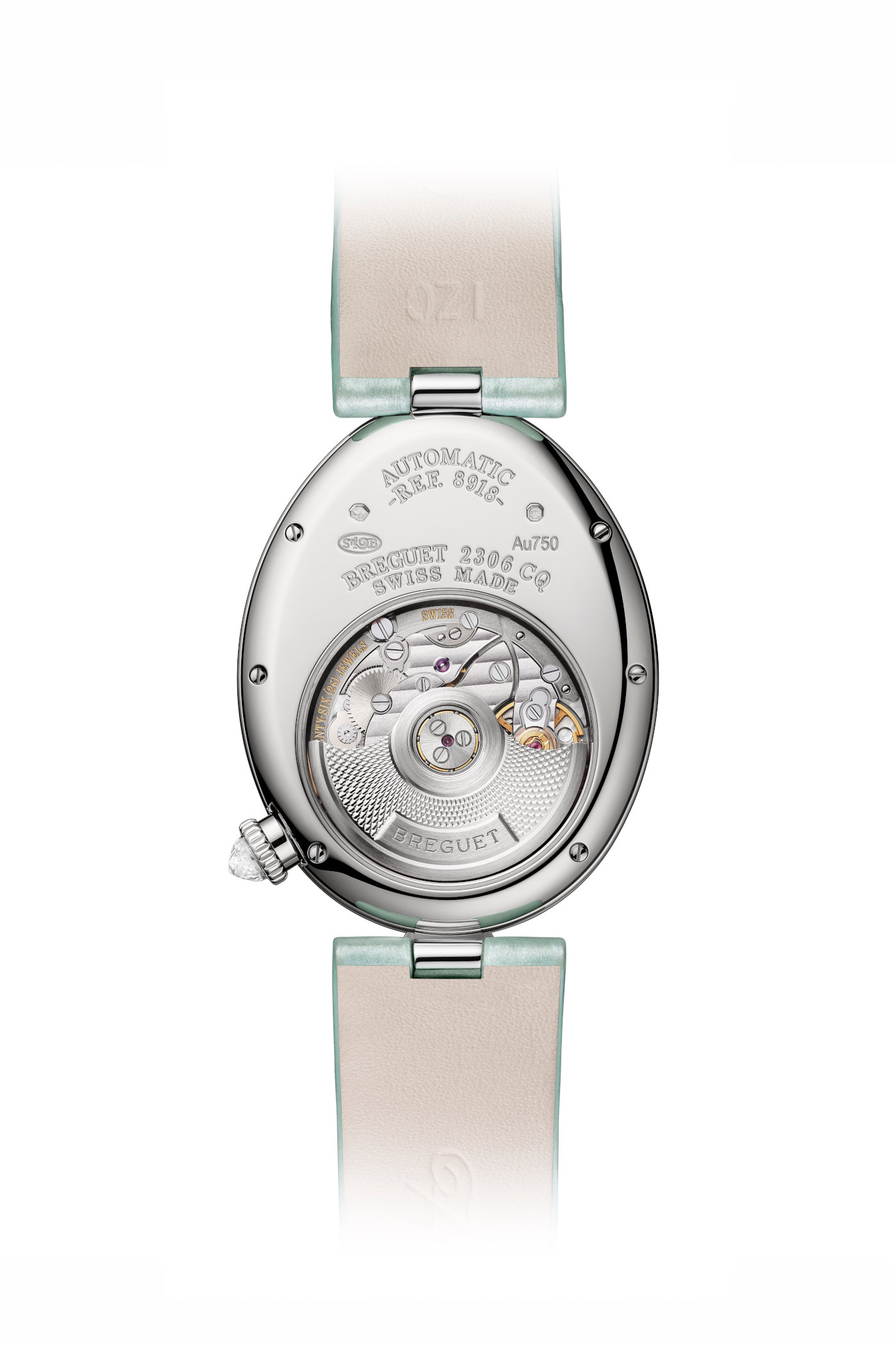 Equipped with the in-house calibre 537, the automatic movement has a power reserve of 45 hours and oscillates at 3.5Hz. A sapphire crystal on the caseback reveals the round movement, complete with a Breguet balance wheel and a contemporary silicon balance spring. The Reine de Naples 8918 is presented on a matching mint-green alligator strap with a triple-folding buckle set with 28 diamonds. It retails for CHF 45,900 / EUR 53,800.
