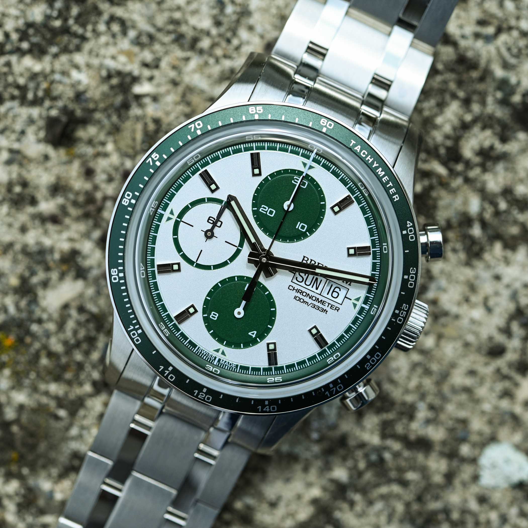 Brellum is a brand apart… An independent company run by Sebastien Muller, it only sells watches directly to customers, caps its production to 299 pieces a year, and only makes mechanical and COSC-certified watches. However, it’s not about ultra-high-end indie timepieces but pilot and racing chronographs. Offering great value for money and impeccable execution, it has developed a sizeable collection, including the cool motorsport-inspired Brellum Pandial. And it now returns in a new, limited run of 23 Emerald Green watches.