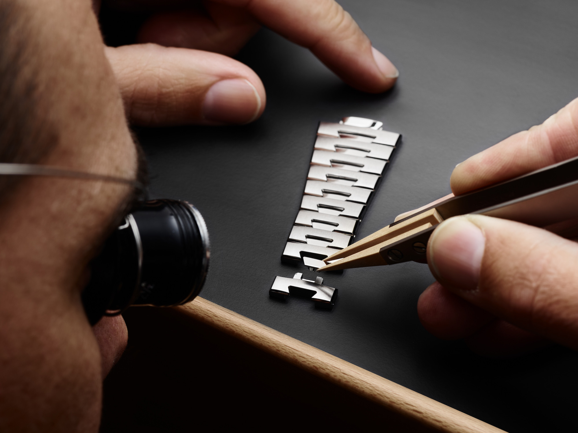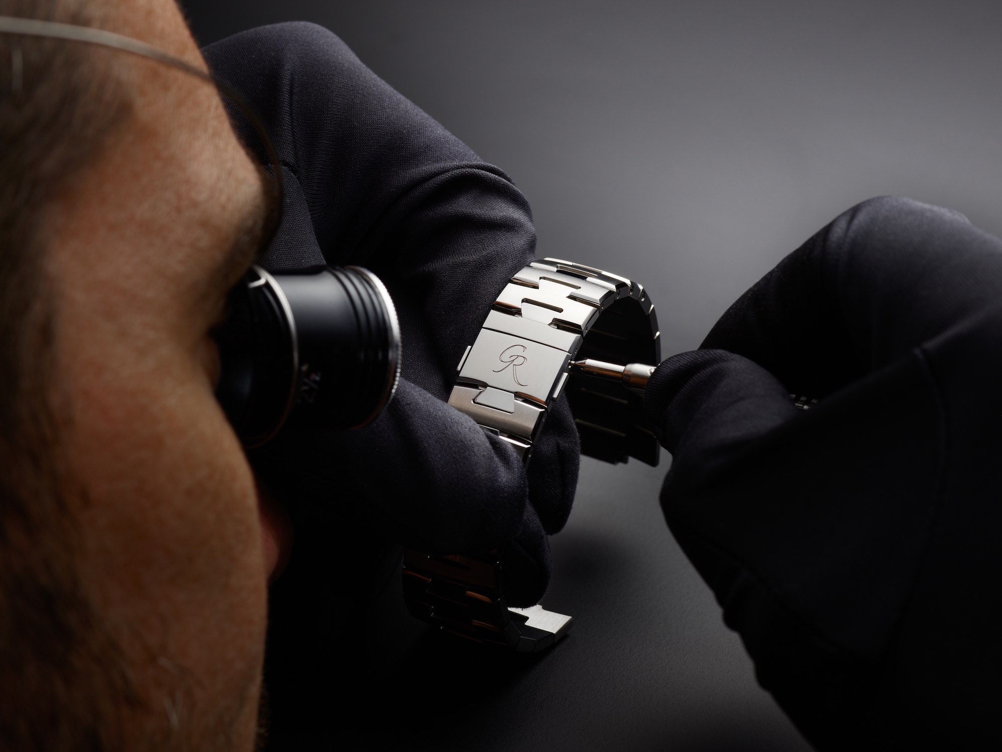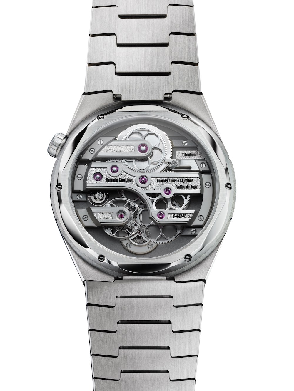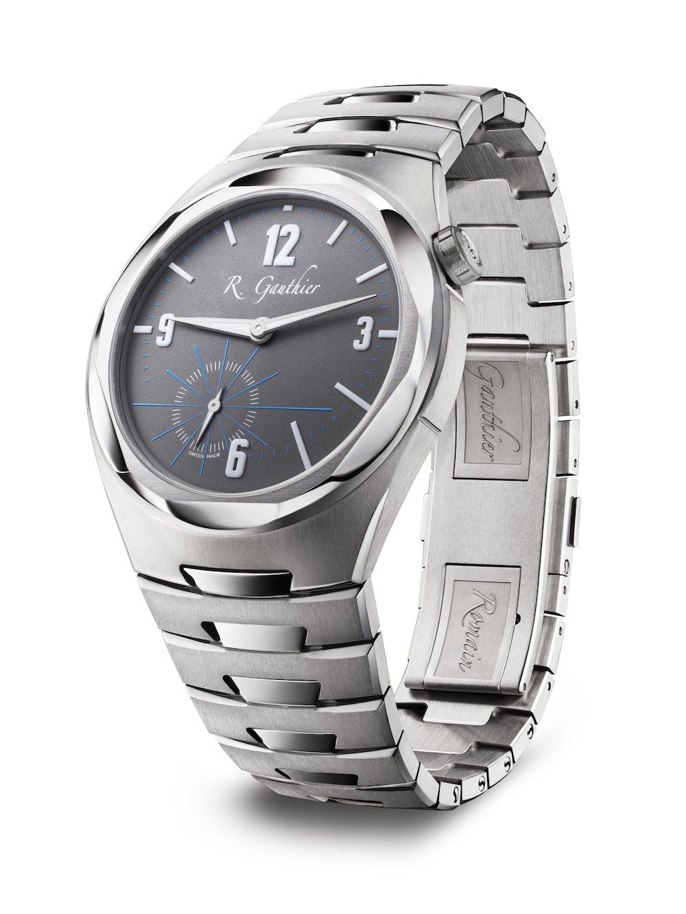When we talk about the integrated bracelet, we usually mean that the watch and the bracelet were designed as one from the beginning, during the conception of a model. Romain Gauthier makes us broaden the definition, as his new “technical and contemporary element” sets a fresh reference. Impeccably designed, it is also perfectly comfortable, and the integration with the case is seamless. “The bracelet is the case, and the case is the bracelet,” to quote Romain Gauthier, the creator.