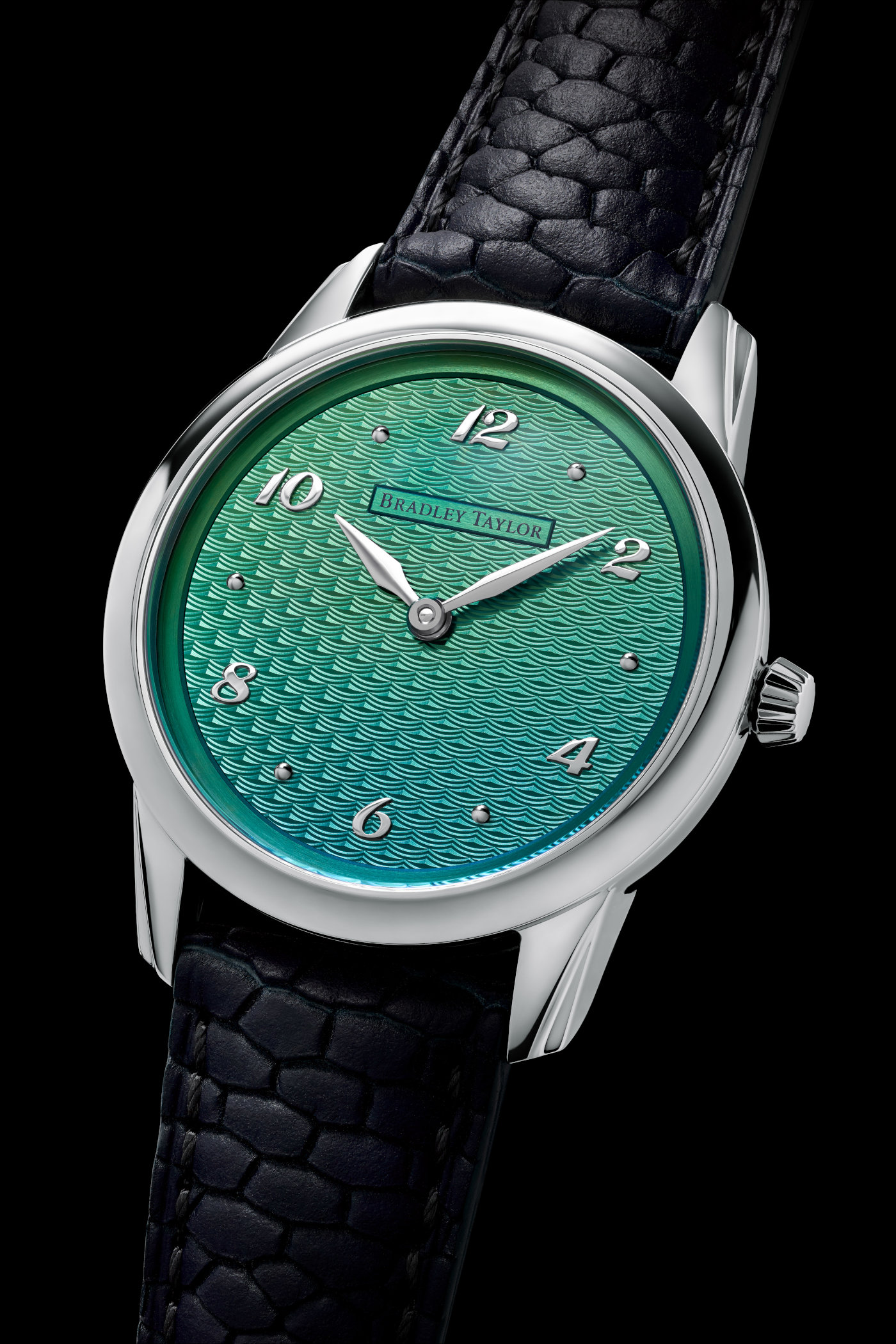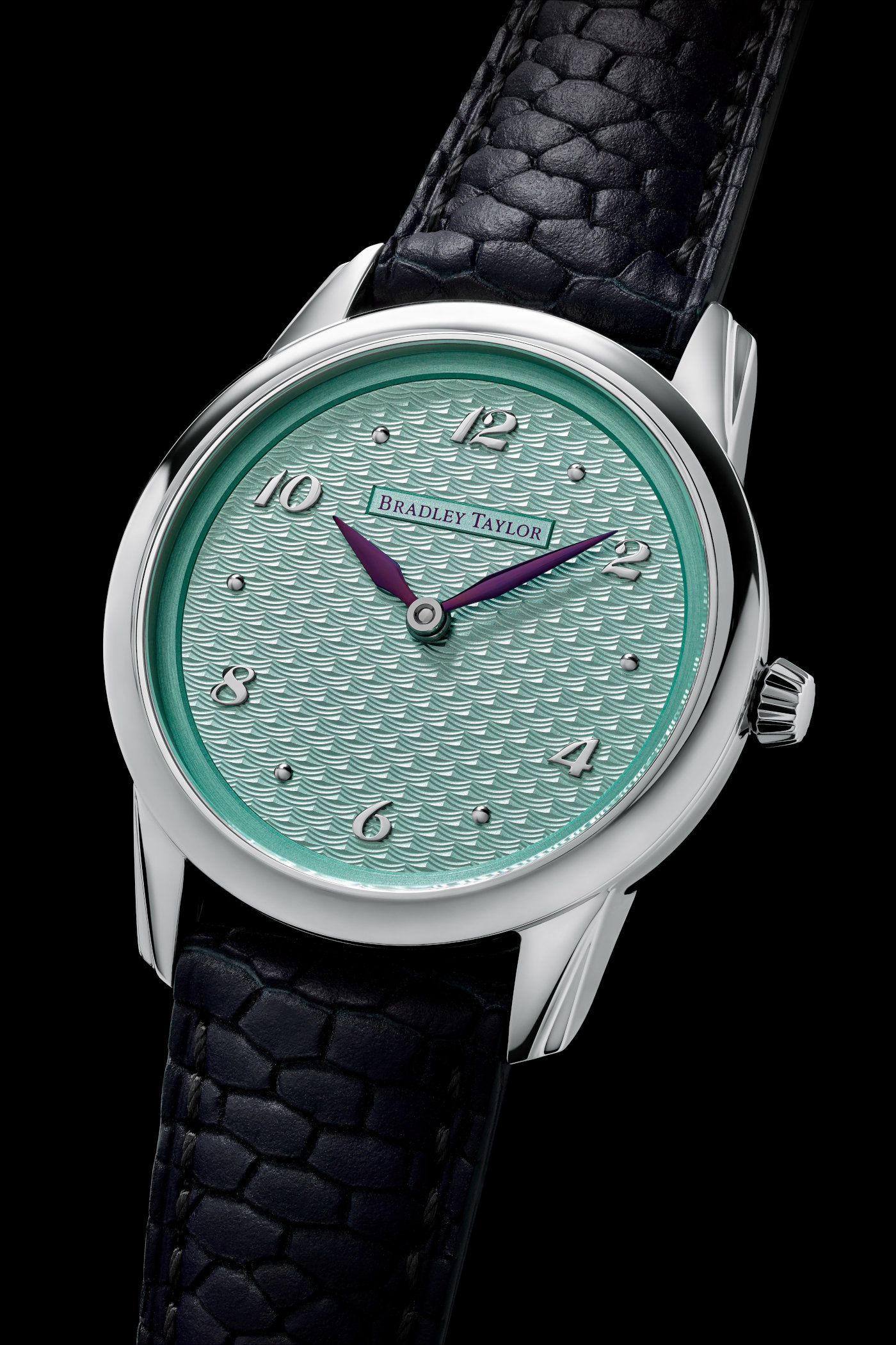 The Lutria is the second creation by Bradley Taylor and is a play on the design codes set by the Paragon. It uses the same compact 39mm by 9.8mm polished stainless steel case, topped with a scalloped bezel and Art Deco-style lugs. These dimensions surely make for a very comfortable watch to wear, and it’s good to know the water-resistance is rated at 120m thanks to a screw-down crown. Bradley Taylor was adamant his watches be worn on a daily basis. No corners are cut, not even when using third-party suppliers, as Bradley tries to find the very best partners to work with.