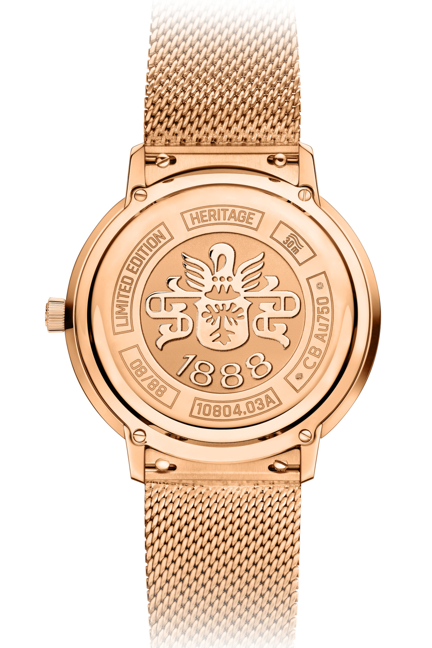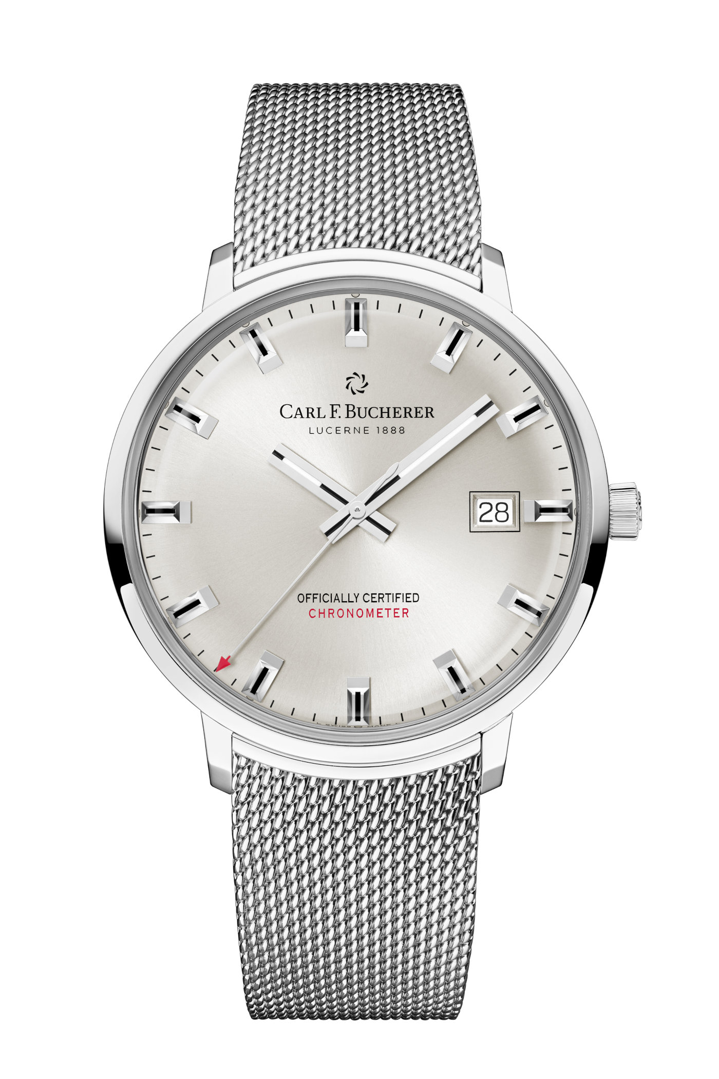 The new Carl F. Bucherer Heritage Chronometer Celebration comes on a steel or 18k gold mesh bracelet. All watches are limited editions of 188 pieces in steel, retailing for EUR 5,900, and 88 pieces in gold retailing for EUR 19,900.