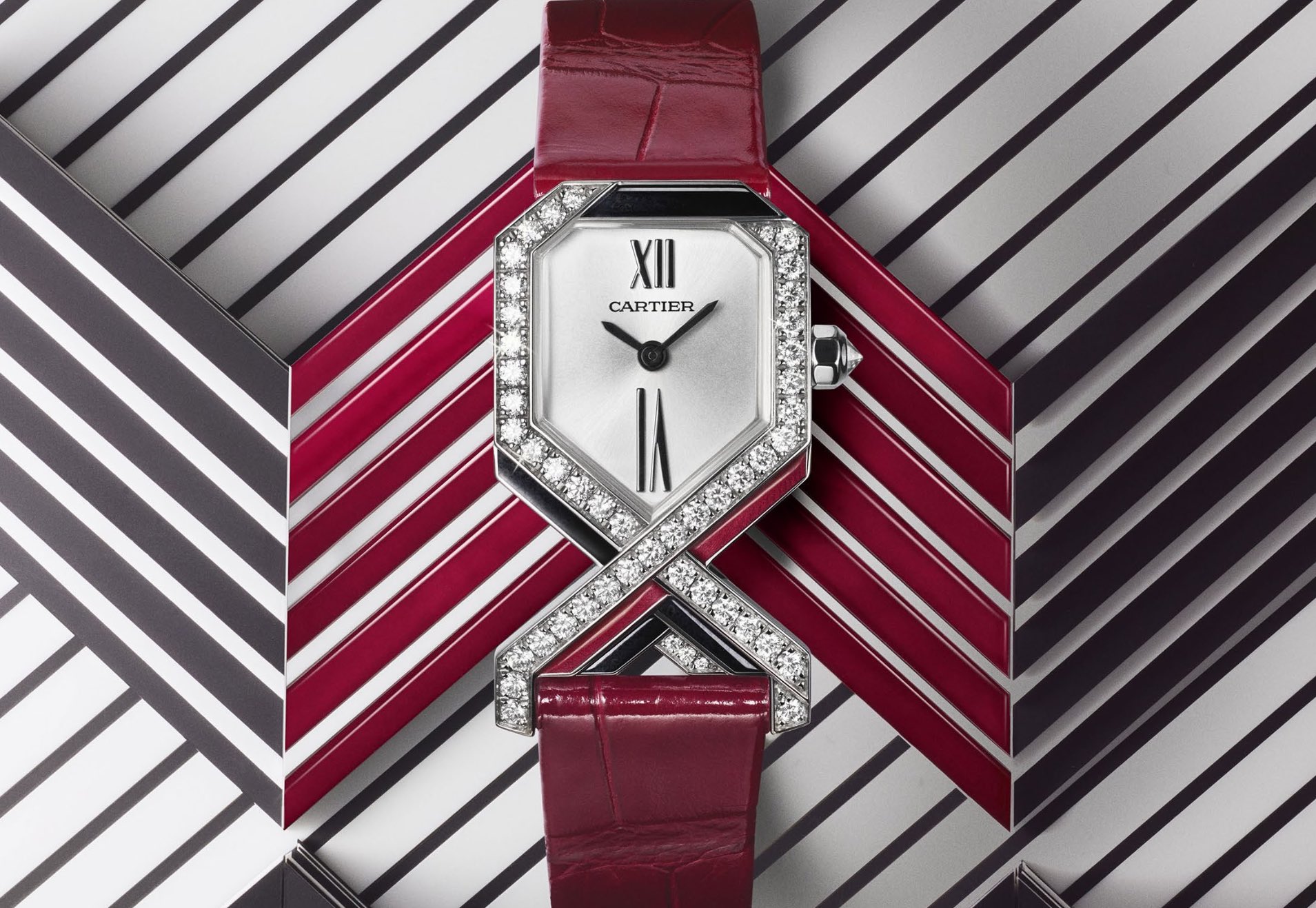 Two other models, the Tank Chinoise Red and Diagonale, are also included in the pre-SIHH appetisers and have been jazzed up with precious stones to emphasize their unusual shapes. The Tank Chinoise Red is the direct descendant of the iconic 1921 Tank Chinoise with lugs designed to evoke the architecture of Chinese temples. In 2019 Cartier radically revisits the watch with a much longer and more elongated case in white gold transforming it from its original square shape into a rectangle.