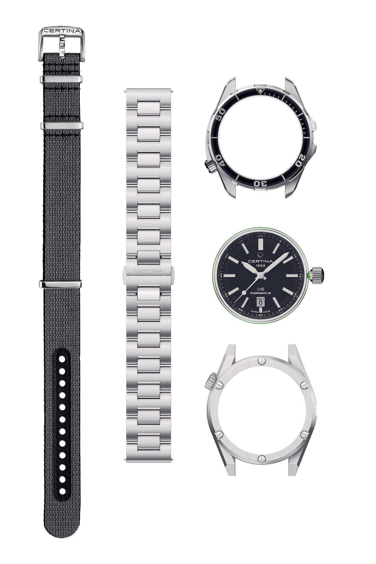 Last but not least, the kits are not set in stone and evolution has been taken into consideration too. Indeed, thanks to an online configurator, you can easily set up your personal favourite combination at any time and have it sent directly to your home by the Certina Online Shop. Also, all elements can also be purchased individually online.