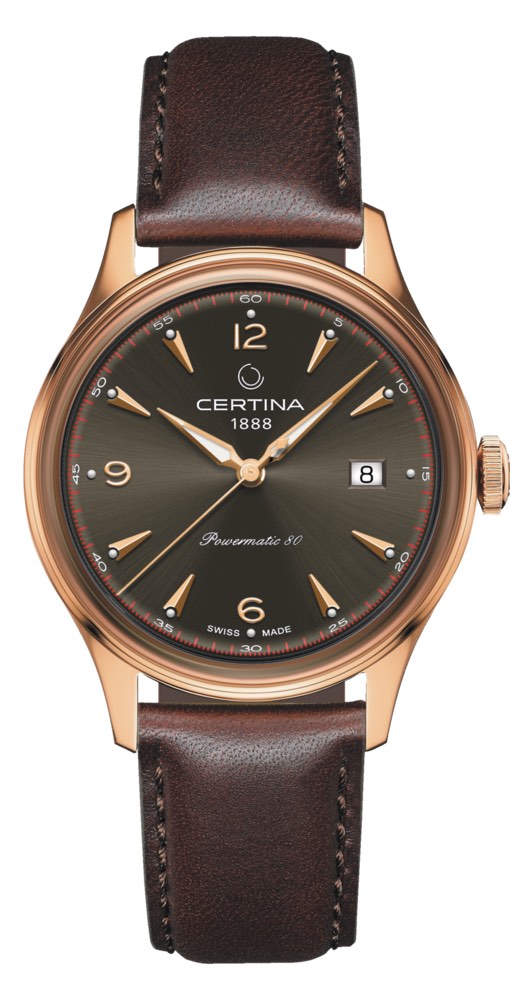 The new Certina DS Powermatic models in plain stainless steel cases retail for CHF 850; the models with gold-coloured PVD cases are slightly more expensive and retail for CHF 890.