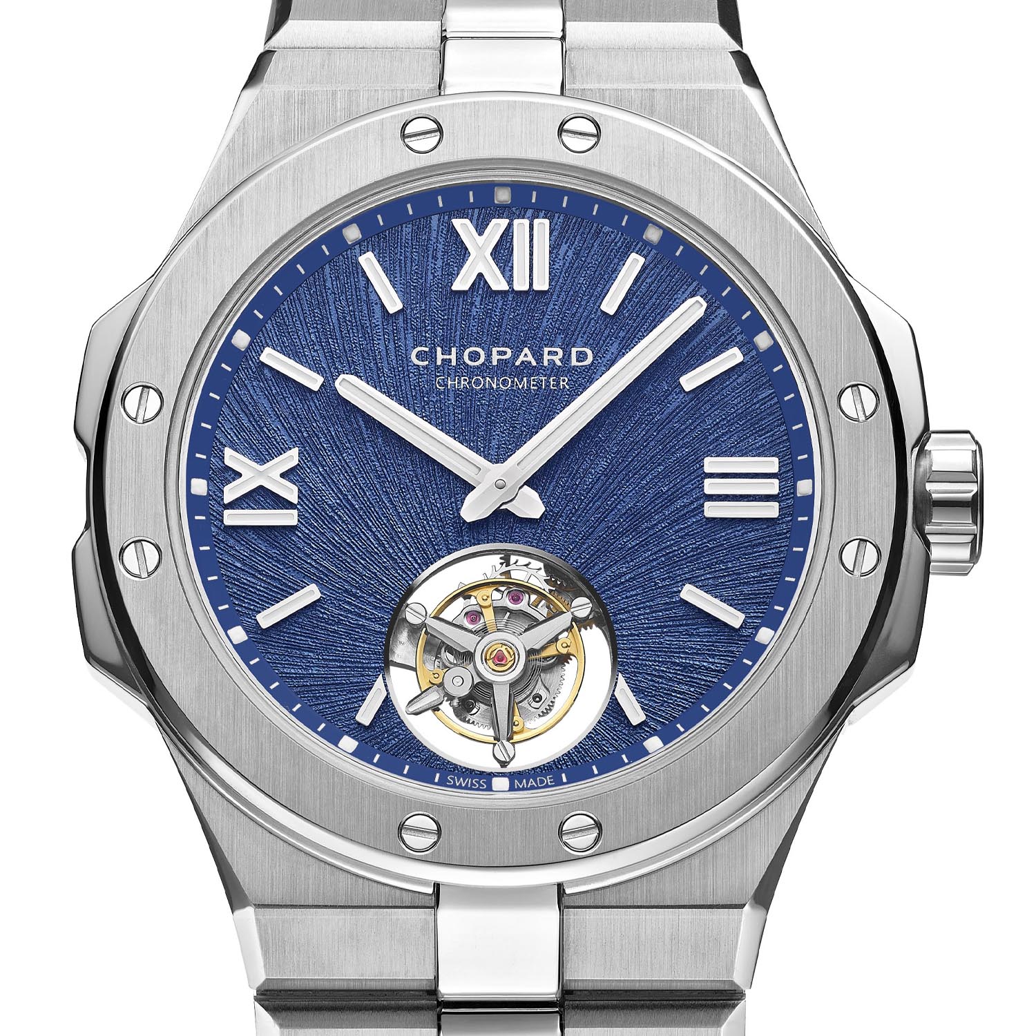 The Alpine Eagle Flying Tourbillon will be available in Chopard’s proprietary Lucent Steel A223, a highly biocompatible alloy that is 50% harder than conventional steel alloys. It is reportedly more reflective than standard steel alloys, leading to a more pronounced sheen.