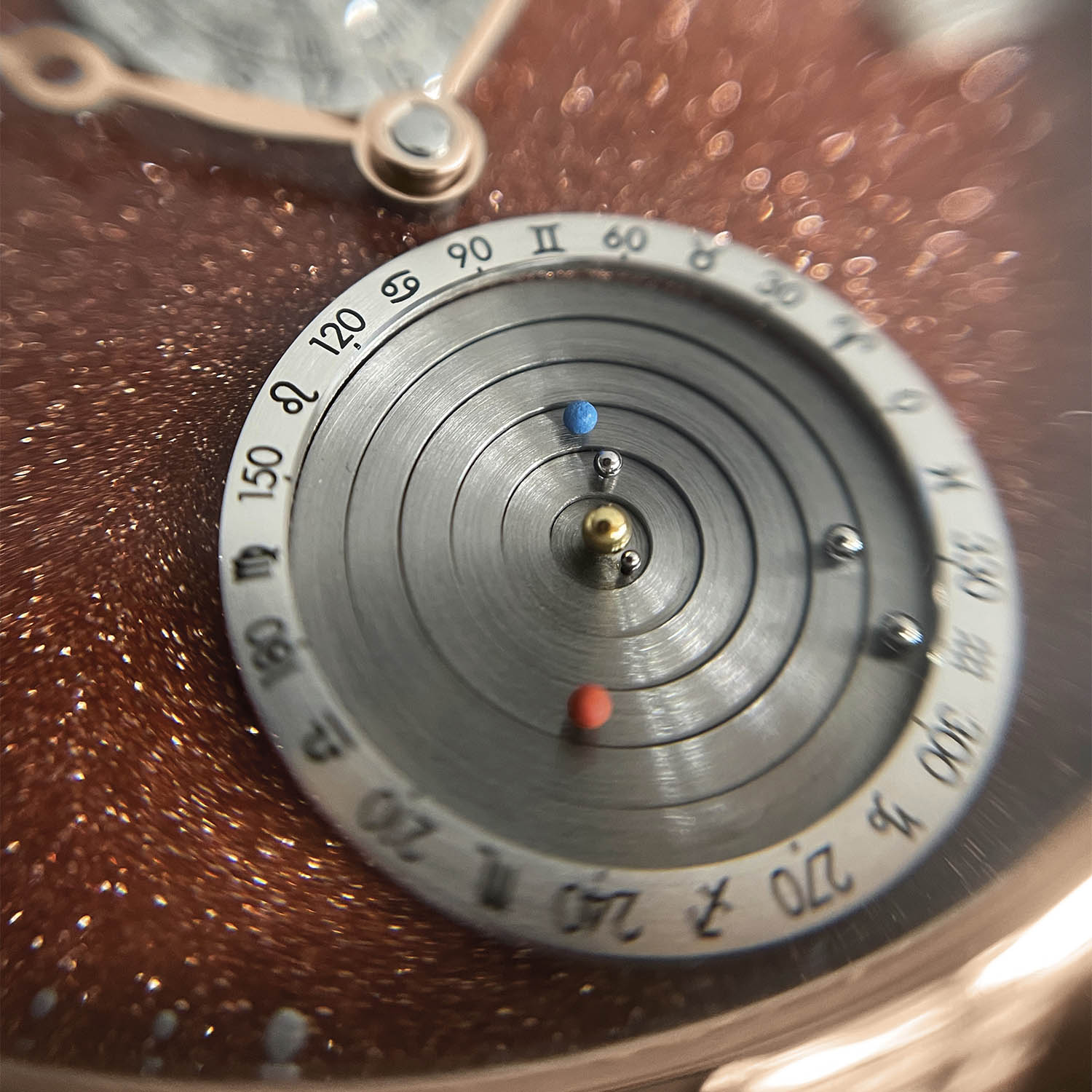 The red sandy grounds of Mars get reproduced on the dial of this new edition of CVDK Planetarium