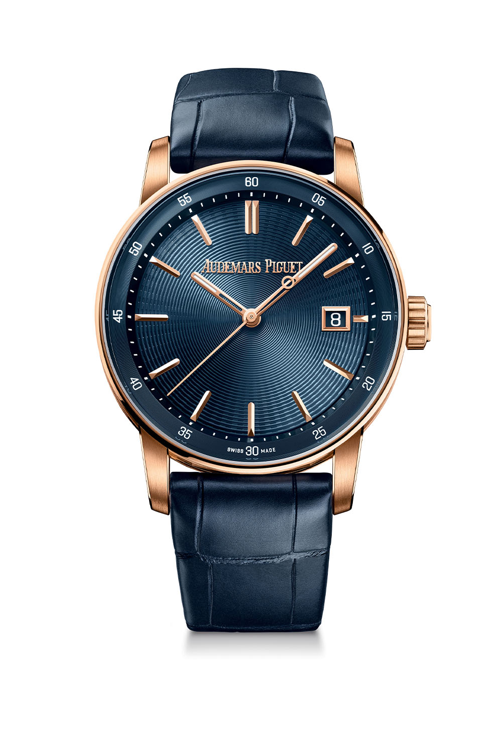 The seven new references in this collection are presented in rose gold cases, with PVD-coated or galvanic-treated dials featuring the new stamped pattern with elongated, flattened, faceted, and polished 18k pink gold hour indices. The indices and rose gold hands are enhanced with luminescent material for optimal readability in low-light conditions. AP reports subtle changes made to the typography of the seconds scale and the shape of the crown to reinforce the modern style of the timepieces and align with the design introduced in 2023.