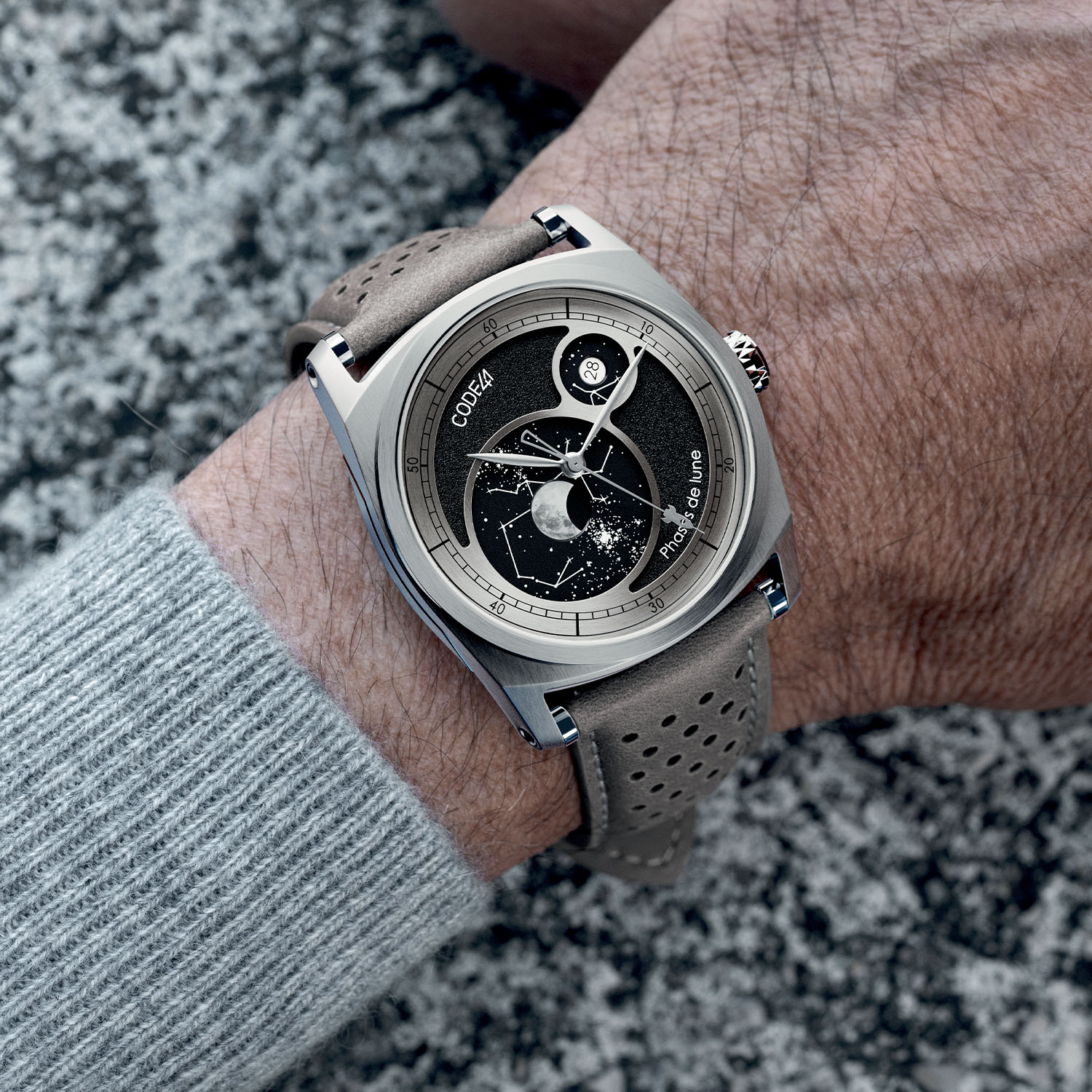 Code41 was founded in 2016 by Claudio d’Amore with an emphasis on bold styling and community involvement. Input from watch enthusiasts helps shape new designs and ultimately production watches, creating a sense of community that’s fairly unique in the industry. Recent examples include the NB24 Chronograph and Mecascape table/pocket clock, which are anything but conventional timekeepers. The latest Moon Inception takes the common moonphase in an interesting direction with a moon(ish) theme throughout the dial. It’s both functional and stylish, and has the mechanical chops to back up the cool looks.
