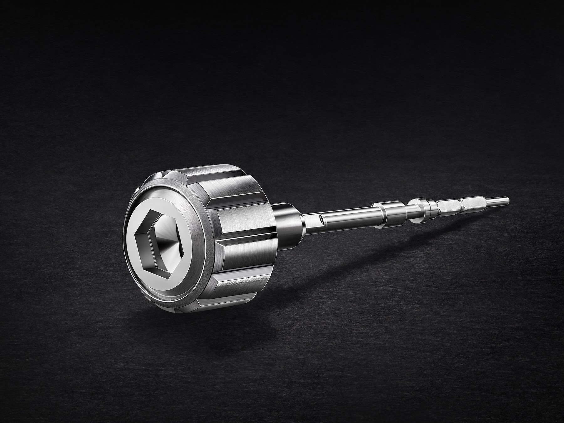 The new Locomotive GCCR997 is, at its core, nearly identical to the limited-edition Locomotive GCCR999. It comes in a 38.8mm by 8.9mm hexagonal case crafted from high-intensity titanium, offering 100m of water-resistance. The design leans heavily into geometry, with a matching hexagonal bezel secured by six hexagonal screws – yes, hexagons dominate. Finishing will be impressive, balancing brushed and mirror-polished surfaces, as it was the case for the 2024 edition. At 4 o’clock, a ribbed screw-down crown continues the theme with its own hexagonal motif, while the caseback remains solid, and a sapphire crystal protects the distinctive dial.