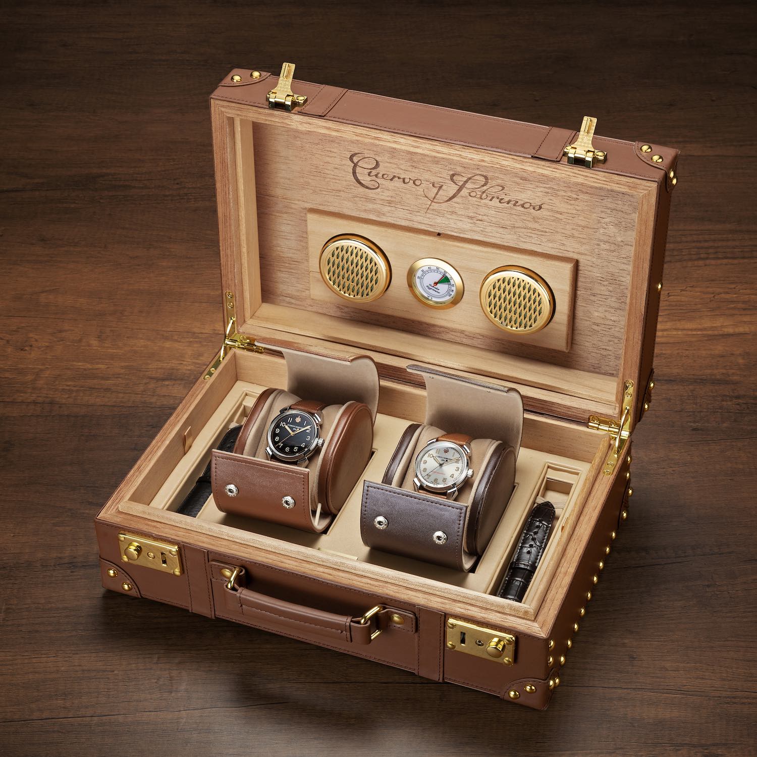 The cream and brown dial models are limited to 140 pieces and retail for CHF 2,500 and CHF 3,000, respectively. The two-piece silver and black dial set is limited to 30 sets and retails for CHF 6,000, including the travel humidor case.