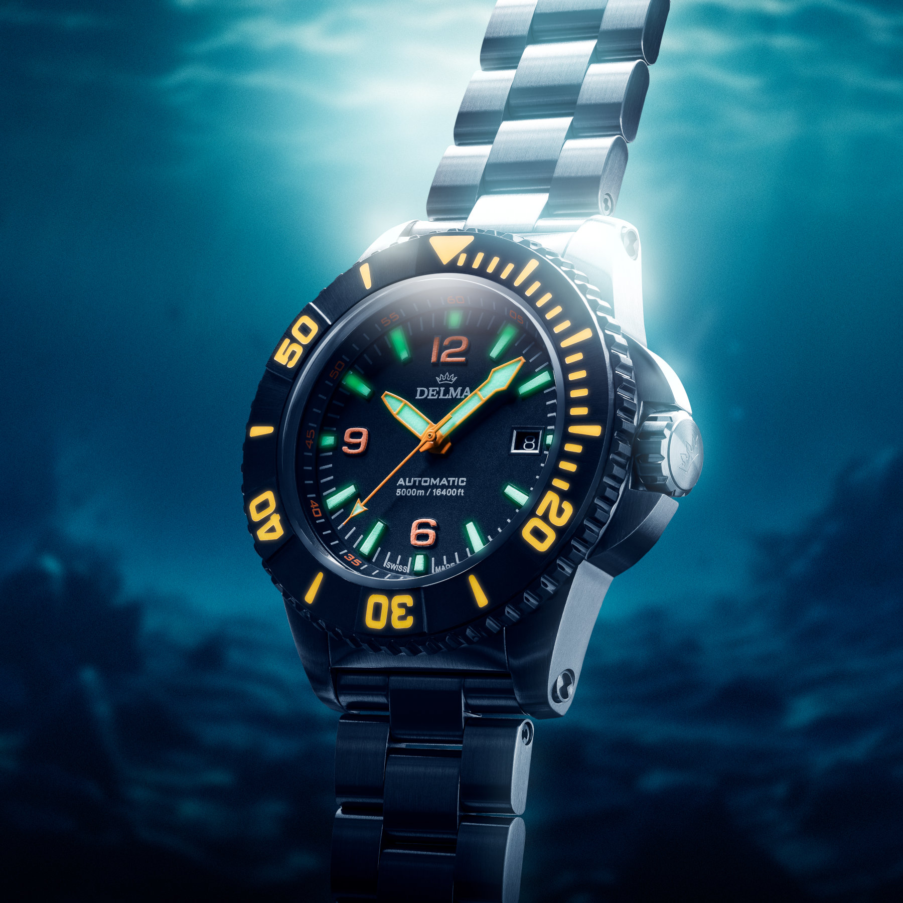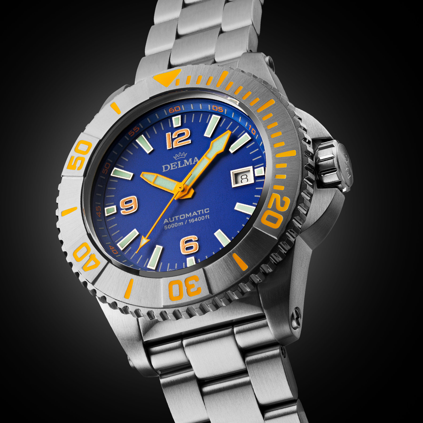 The dial design carries forward from the previous model, offering signature choices of blue, black, or orange colours, and there’s also an option for a black DLC-coated bezel. This variety results in six distinct-looking references in the Blue Shark IV collection, catering to diverse tastes and preferences. Delma’s commitment to functionality and legibility is evident, with indices and long and wide hour and minute hands, with orange and green Super-LumiNova ensuring that the Blue Shark III and IV remain easily readable even in the most challenging underwater conditions.