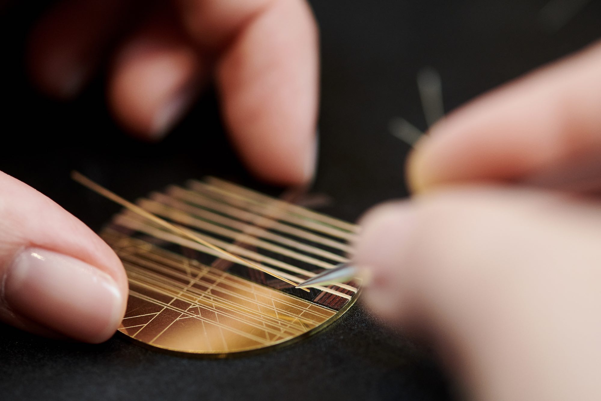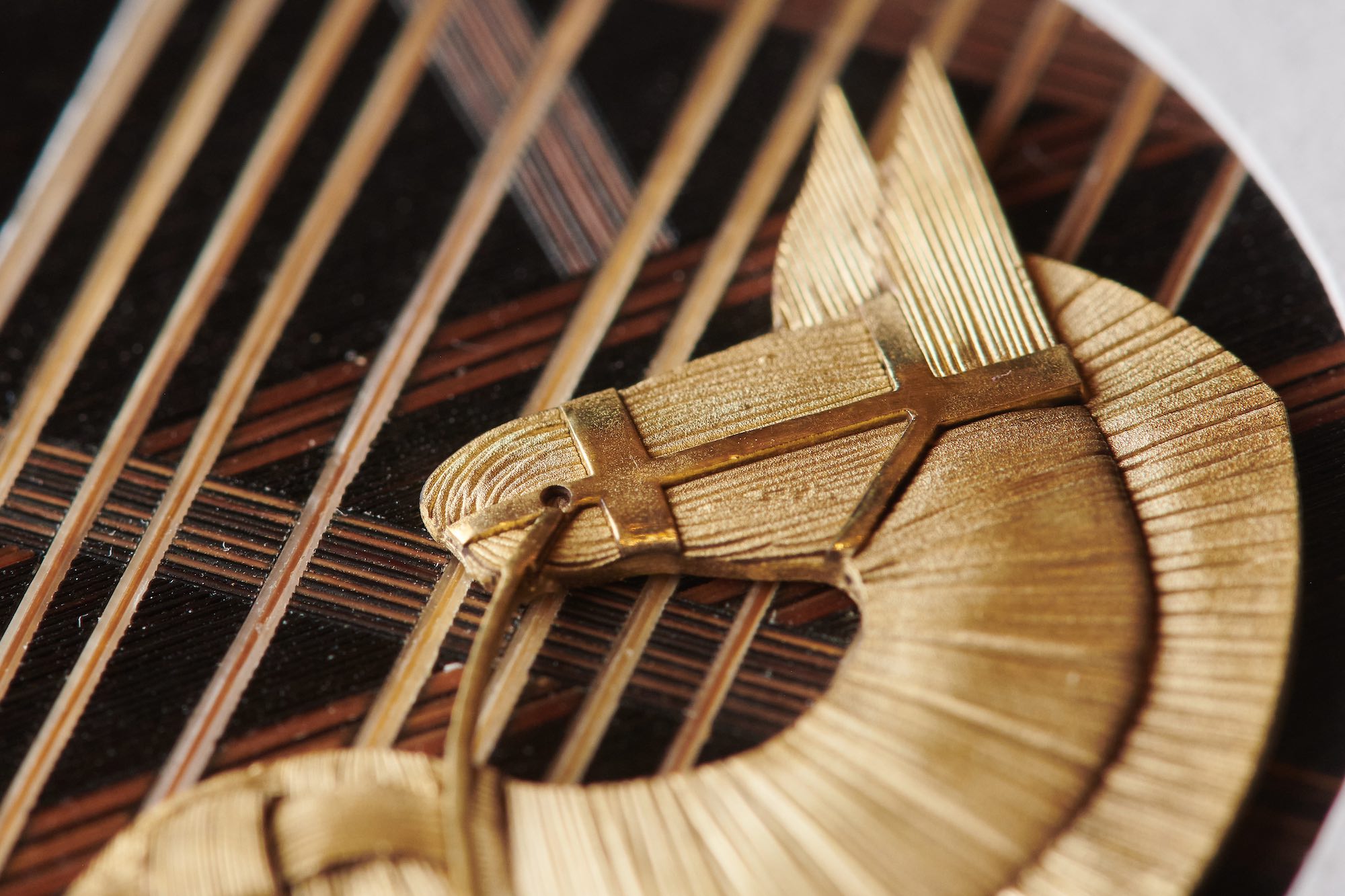 Taking the brand’s love of all things equestrian to new heights, Terawat’s woven horse motif is recreated on the cover of the pocket watch employing the art of horsehair marquetry. Made exclusively by hand, horsehair marquetry is a rare art involving different shades of horsehair cut and glued strand by strand to compose the motif. Producing a raised three-dimensional surface like the woven Thai artefacts, the two horses on the dial are depicted with chestnut and golden horsehair. To exalt the profile and contours of the horses, an engraver creates reliefs and depths in gold using a burin and chisel.