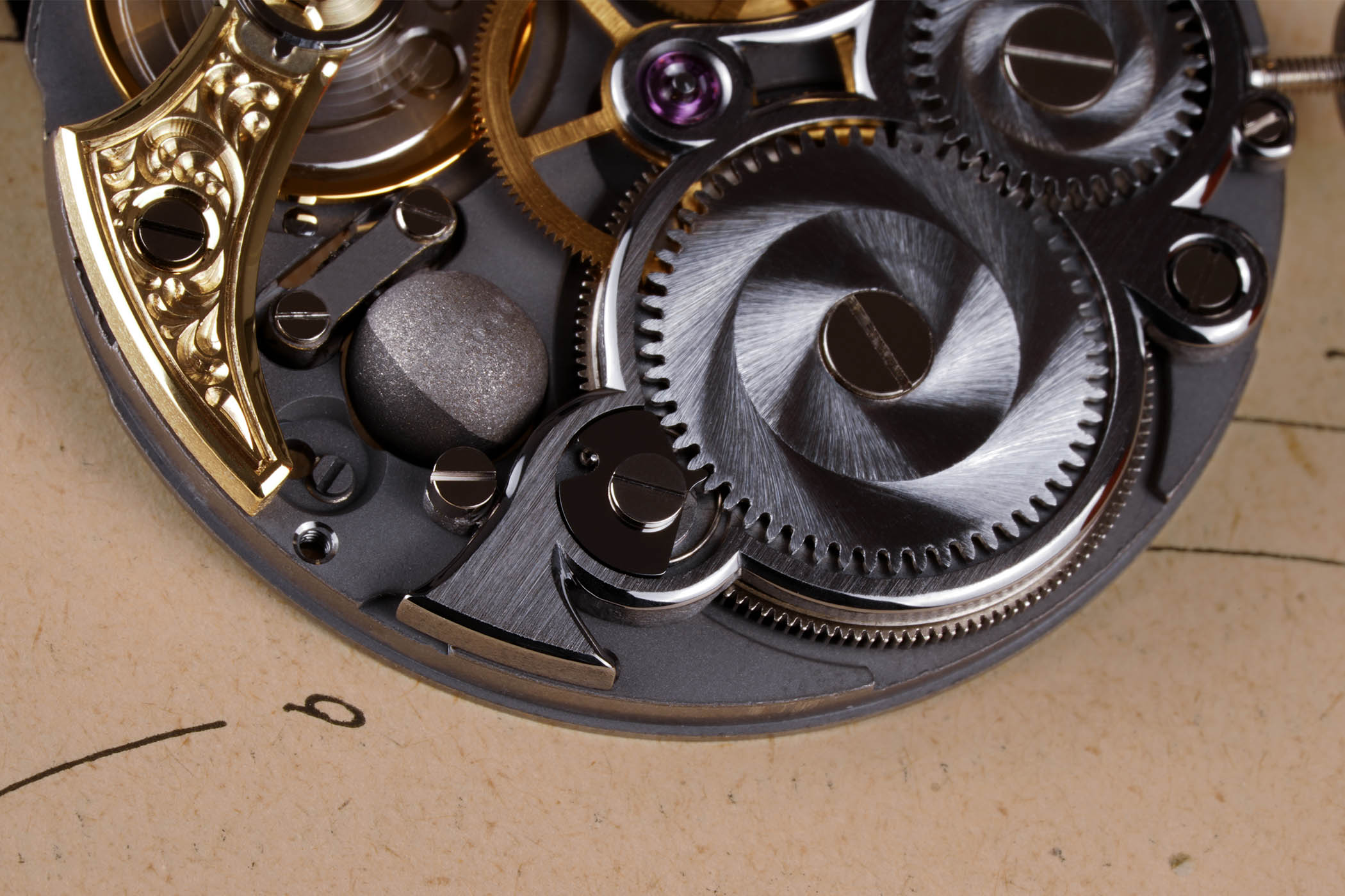 For his creations, Felipe Pikullik has relied chiefly on the ETA/Unitas 6498/6497 movements. This time around, he has massively reworked it, dropping the small seconds indication in the process and integrating his in-house developed and made 3D spherical moon phase display. The attention to detail of the front continues around the back, with a myriad of traditional finishing techniques on display. A rhodium-plated mainplate holds hand-skeletonised bridges, gold-plated gears and a gold-plated and hand-engraved balance cock. The screw heads are black-polished, and the crown and barrel wheels have a sunburst brushing. All the edges have been bevelled and polished by hand as well. When fully wound, it will keep running for 50 hours.