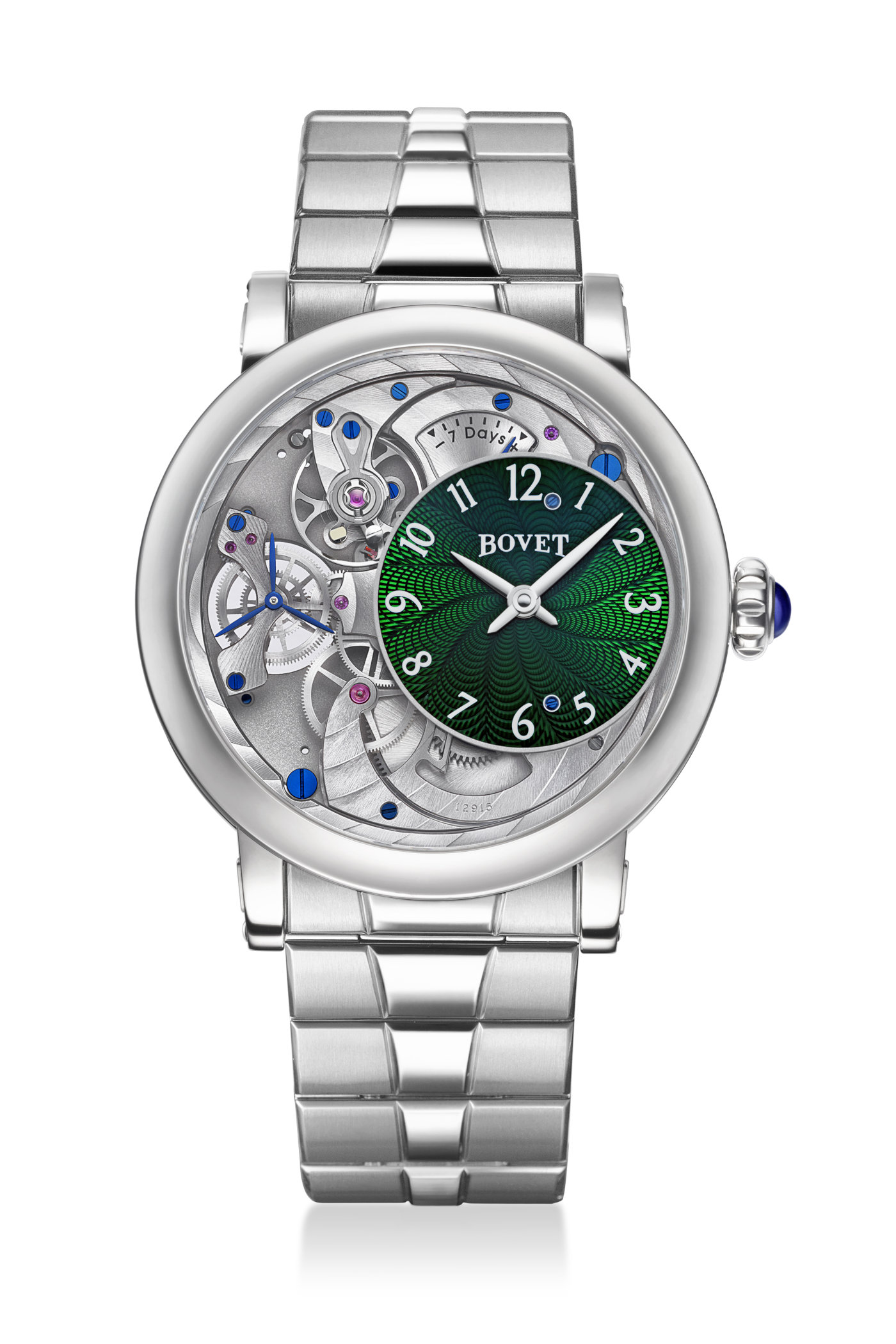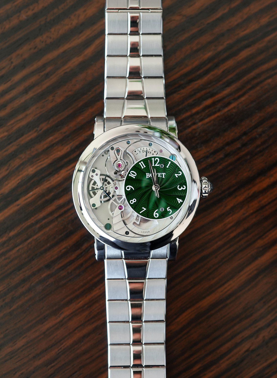According to the brand, the Récital 12 was created in response to collectors’ requests for an everyday-wear timepiece, specifically on a bracelet. As explained by Pascal Raffy, “BOVET has traditionally been a strap House, but we have had many collectors from all over the world asking for a metal bracelet. I’m very detail oriented when it comes to comfort and design, so I knew if we did a bracelet, it would have to be as close to perfect as possible. My team and I worked on this timepiece for two full years, going through version after version to get it absolutely right.”