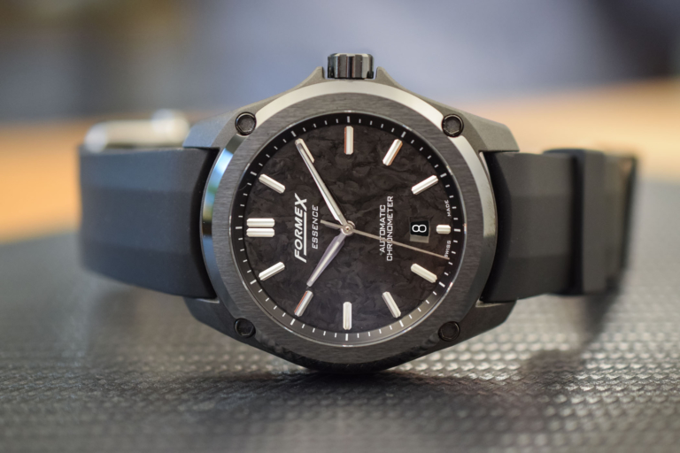 The stainless steel 39mm Essence Space Rock comes standard with a bracelet with a hidden micro-extension; the price is EUR 1,690. More options are available on the brand’s website, with leather or rubber straps also possible ( EUR 1,590). The 41mm carbon Leggera is offered for EUR 1,850 on an all-black NATO-style nylon strap created with WatchGecko, and the company website allows a choice of other straps. You can change all straps and bracelets without tools in seconds. And for the 41mm, nylon, rubber or leather straps are also possible. Both watches are available for pre-order, with delivery promised at the end of January 2023. For more or to purchase, please visit www.formexwatch.com.