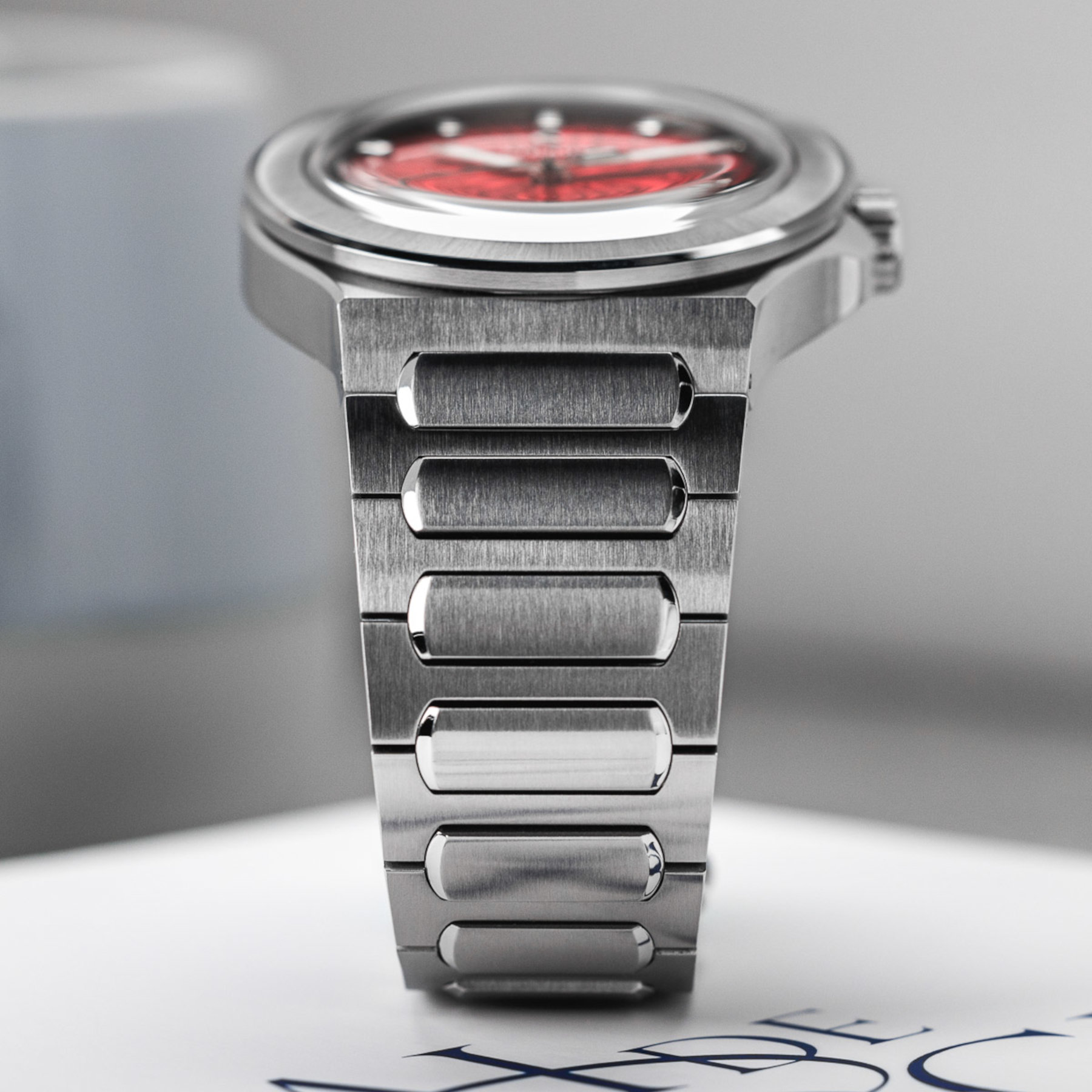 The name comes from the volcanic Jan Mayen Island, far off the coast of Norway, and the result is pretty dramatic. To be honest, the dial of this collaborative limited edition looks rather impressive with its lava-red fumé effect. The ridged pattern is inspired by the insides of an active volcano. The applied markers are polished, with luminous inserts, as are the central hour, minute and seconds hands. White minute markers between the hour indices and a simple Straum logo finish it all off.