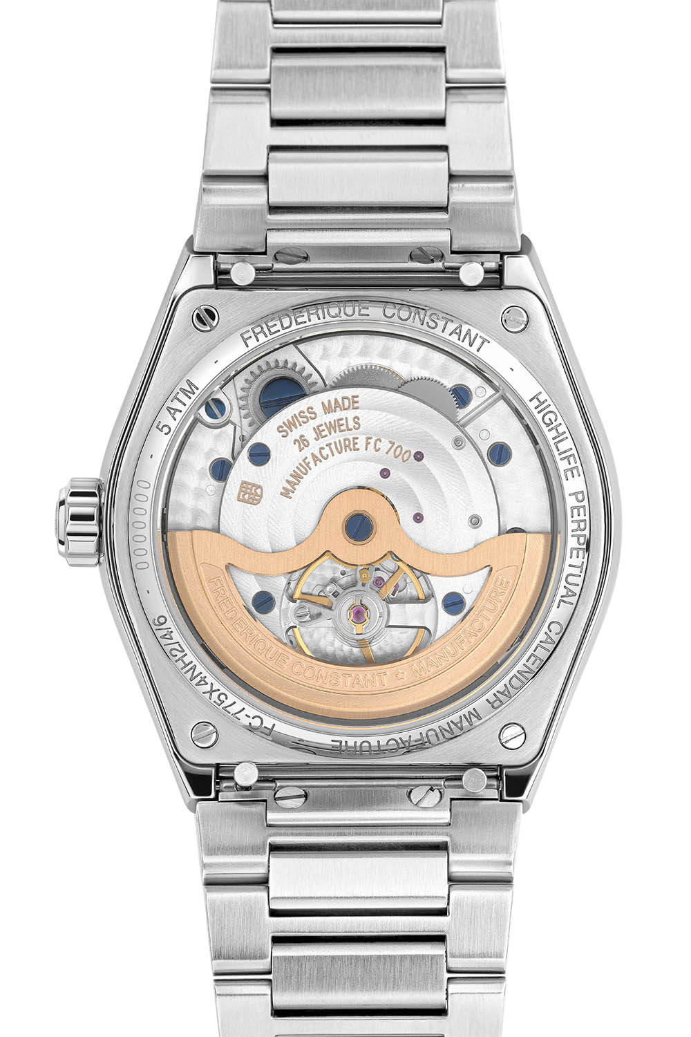 The Frederique Constant Highlife Perpetual Calendar Manufacture Blue-Grey (ref. FC-775BL4NH6B) retails for EUR 8,595. For more information, please visit frederiqueconstant.com.