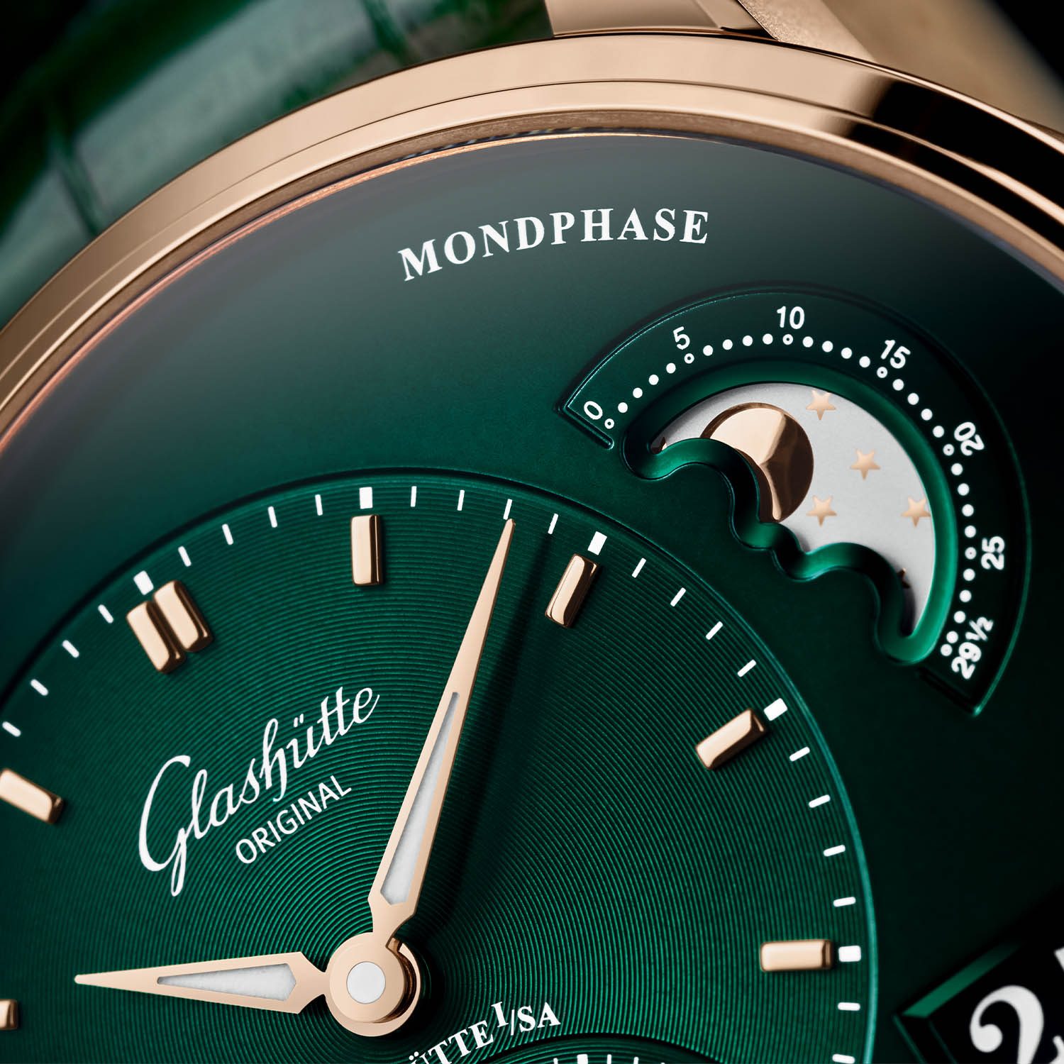 The Glashütte Original PanoMaticLunar Green Dial, Now in Red Gold