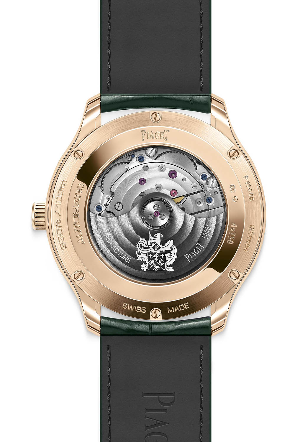 Quick facts: 42mm x 9.4mm 18k rose gold case – sapphire crystals both sides – 100m water-resistant – textured green dial with gold accents, lume on hands and indexes – automatic calibre 1110P, 28,800vph, 50h power reserve – green alligator strap – G0A47010 – not limited, now available – CHF 28,600