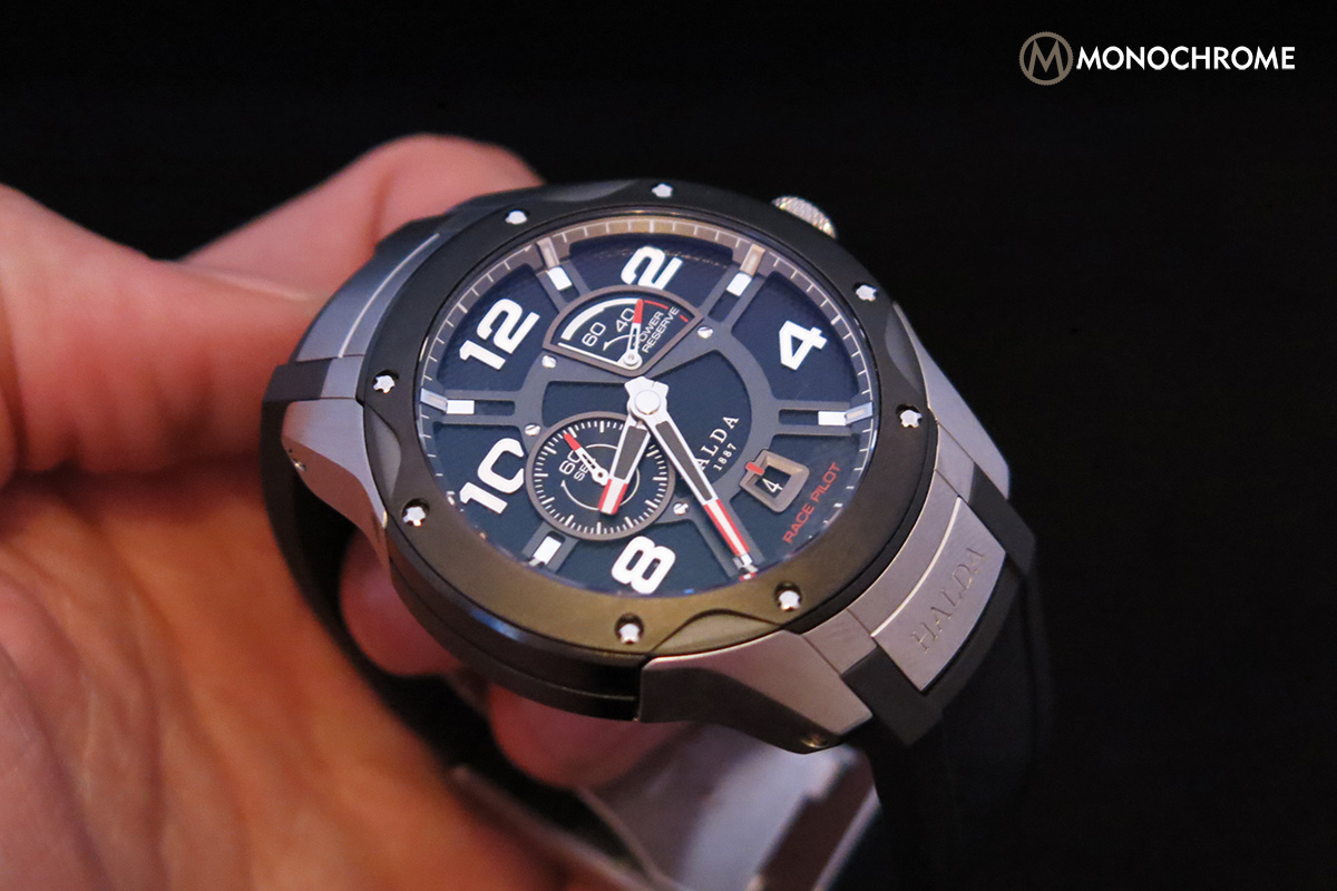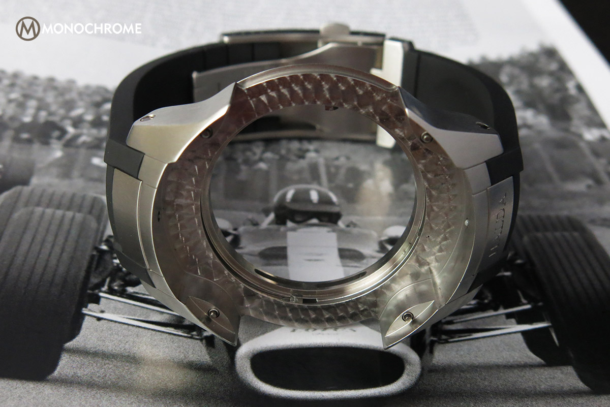 The Race Pilot is a pretty sizeable watch, regardless of which module is snapped in its holder. It is thick, masculine, and partly due to the integrated lug- and pusher-release-system, quite tall from lug to lug. The watch has a very technical design to it, with a multitude of detailing and various materials and finishes like steel, titanium, DLC-carbon coatings and more. The rubber strap brings further sportiness and comfort into the mix.
