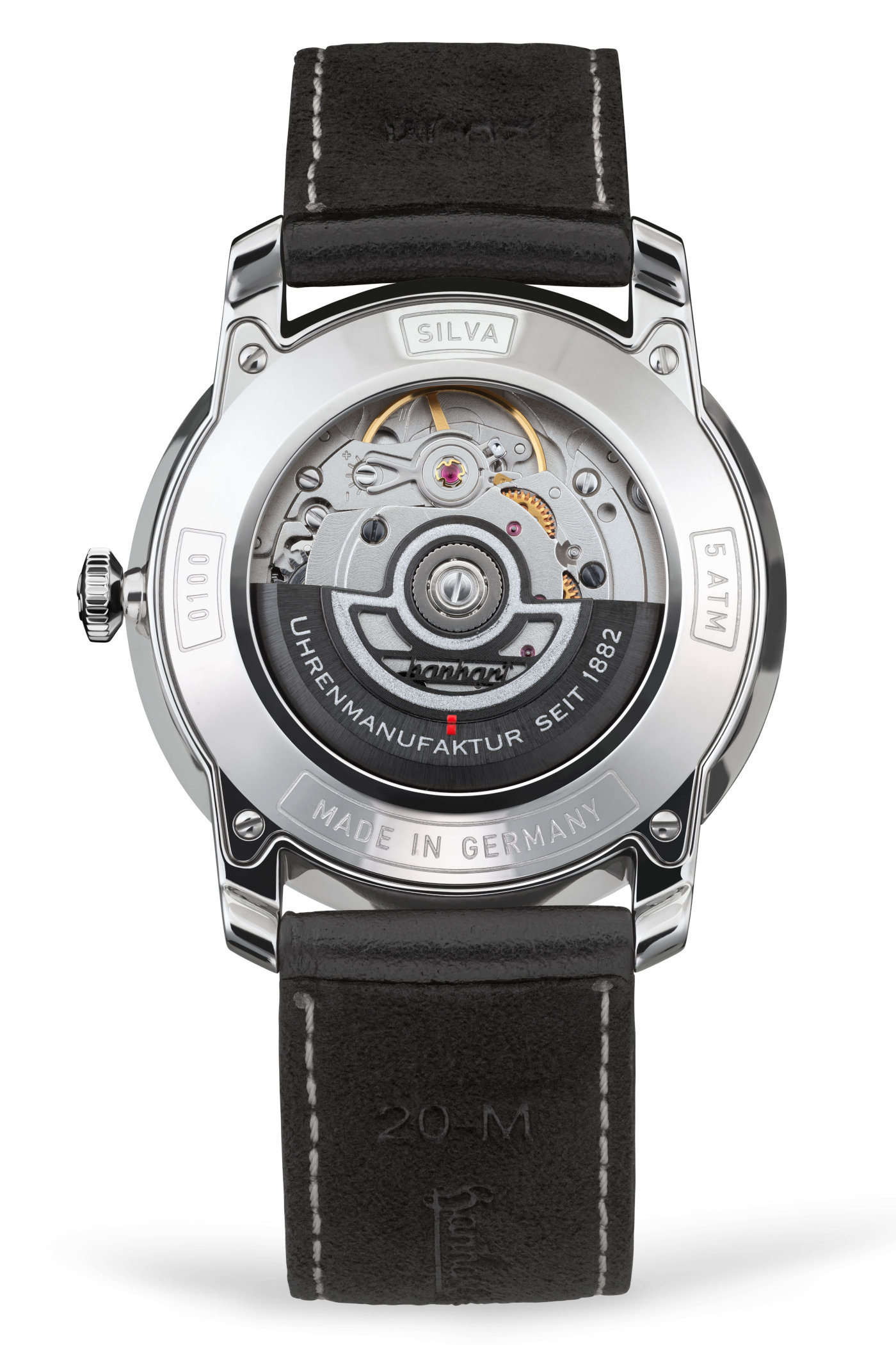 The reverse side is also fitted with a sapphire crystal and reveals the Sellita SW 200 automatic movement with stop-seconds, a 38h power reserve and a customised black rotor. The two new Pioneer Silva models can be ordered with a black ox leather strap with Alcantara lining and a pin buckle or a stainless steel Milanese mesh bracelet. Available to order directly from the brand, the Pioneer Silva retails for EUR 890 (incl. tax).