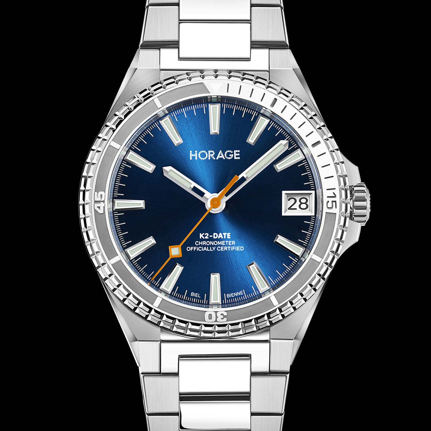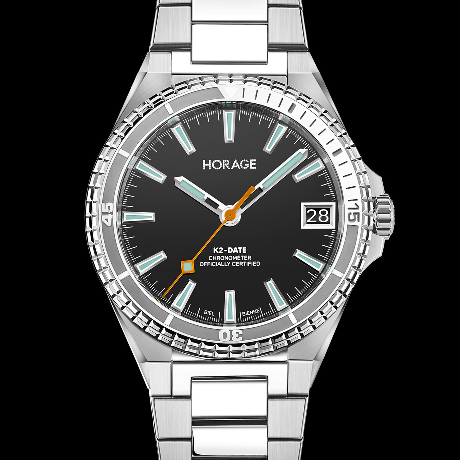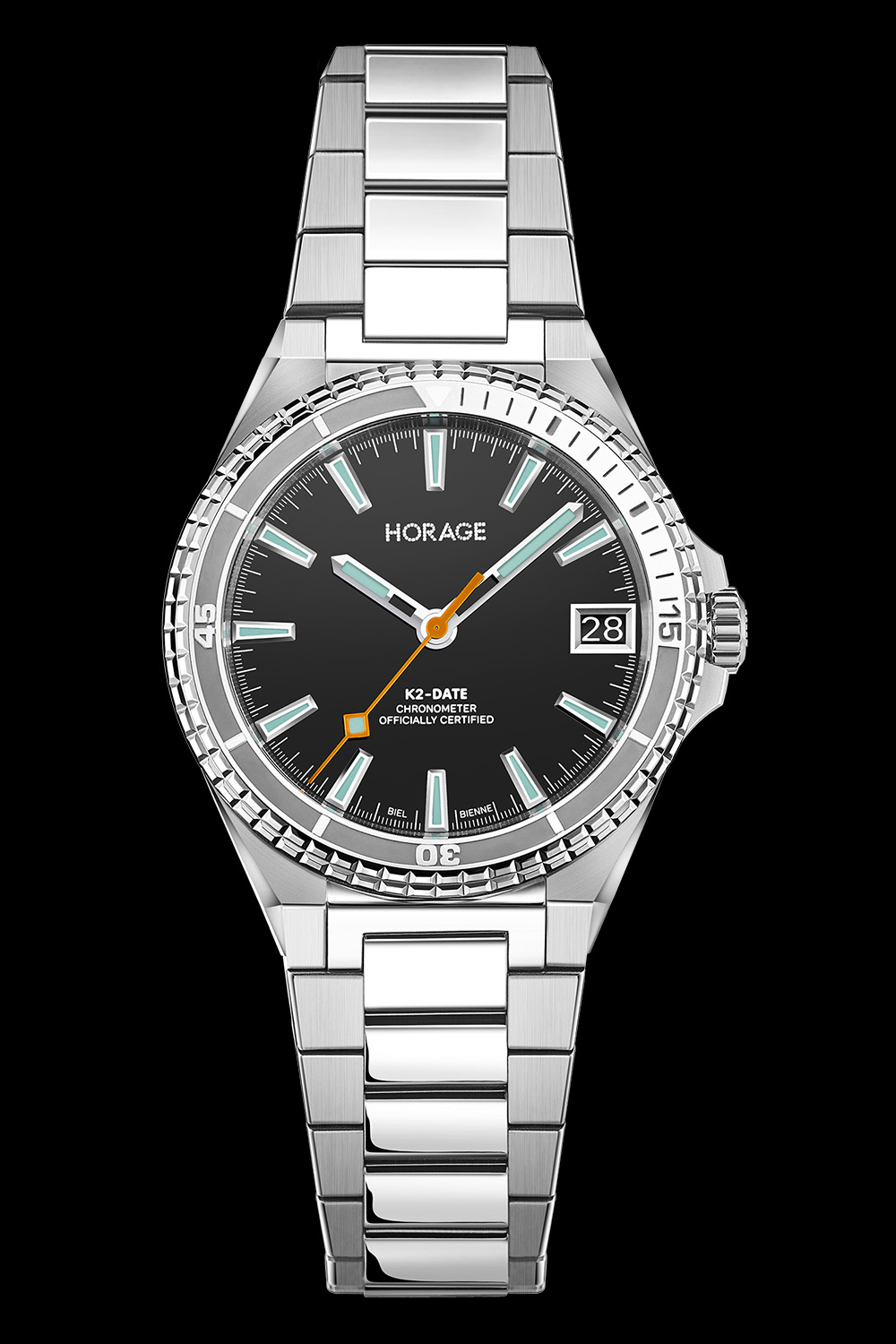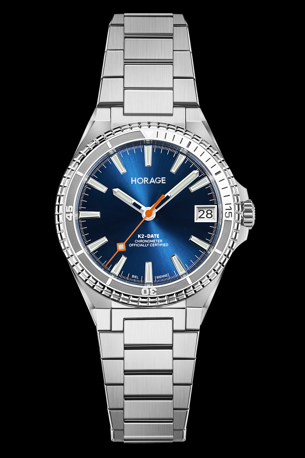 Horage is an independent Swiss brand that’s shaking up the industry with well-priced, in-house collections that include tourbillons and micro-rotors. Last year’s Supersede GMT integrated sports watch featured a well-executed micro-rotor and four complications in a case less than 10mm in height. This year’s follow-up, the Supersede Date, maintains the overall design, water resistance and K2 micro-rotor calibre, but simplifies things with just a date at 3 o’clock. It’s a cleaner design with an even more accessible price and is again universal for both the boardroom and great outdoors.