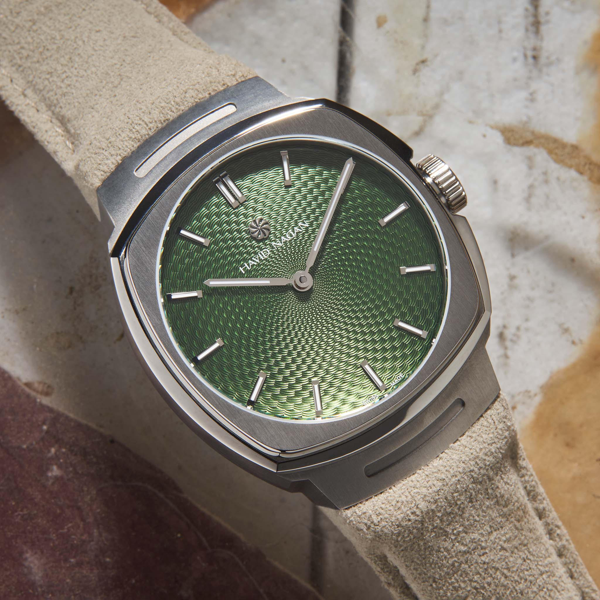 After two and a half years of solitary development, the brand Havid Nagan and its debut watch finally make their official debut. With no formal training as a watchmaker, Aren Bazerkanian founded his Havid Nagan microbrand in Los Angeles and relies on Swiss manufactures based in La Chaux-de-Fonds to bring his designs to life. Judging from the press images, the inaugural HN00 models deserve a second look. A simple time-only watch, the HN00 comes with colourful, eye-catching guilloché dials. The bold architectural cases are also noteworthy and house the customised Schwarz Etienne automatic movement.