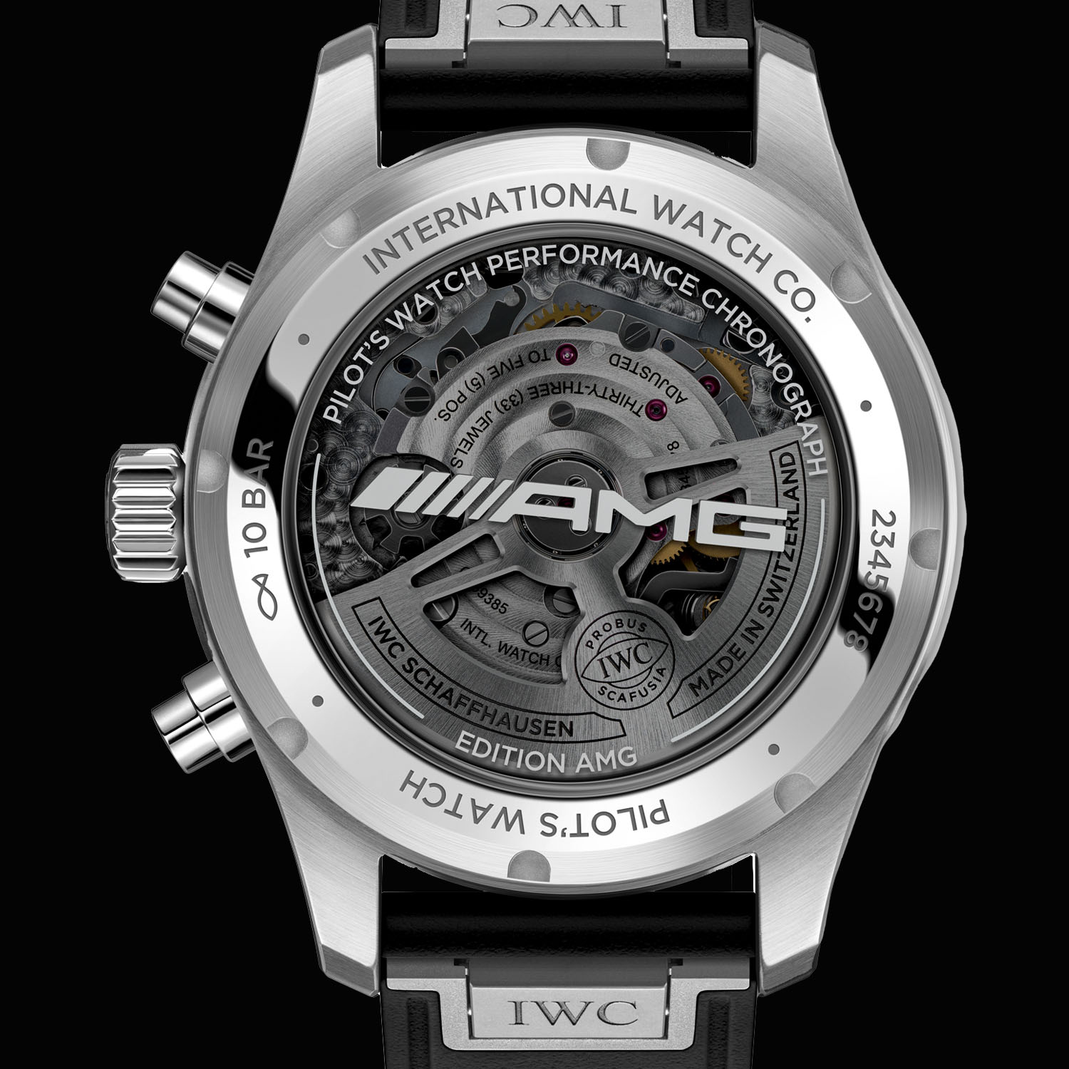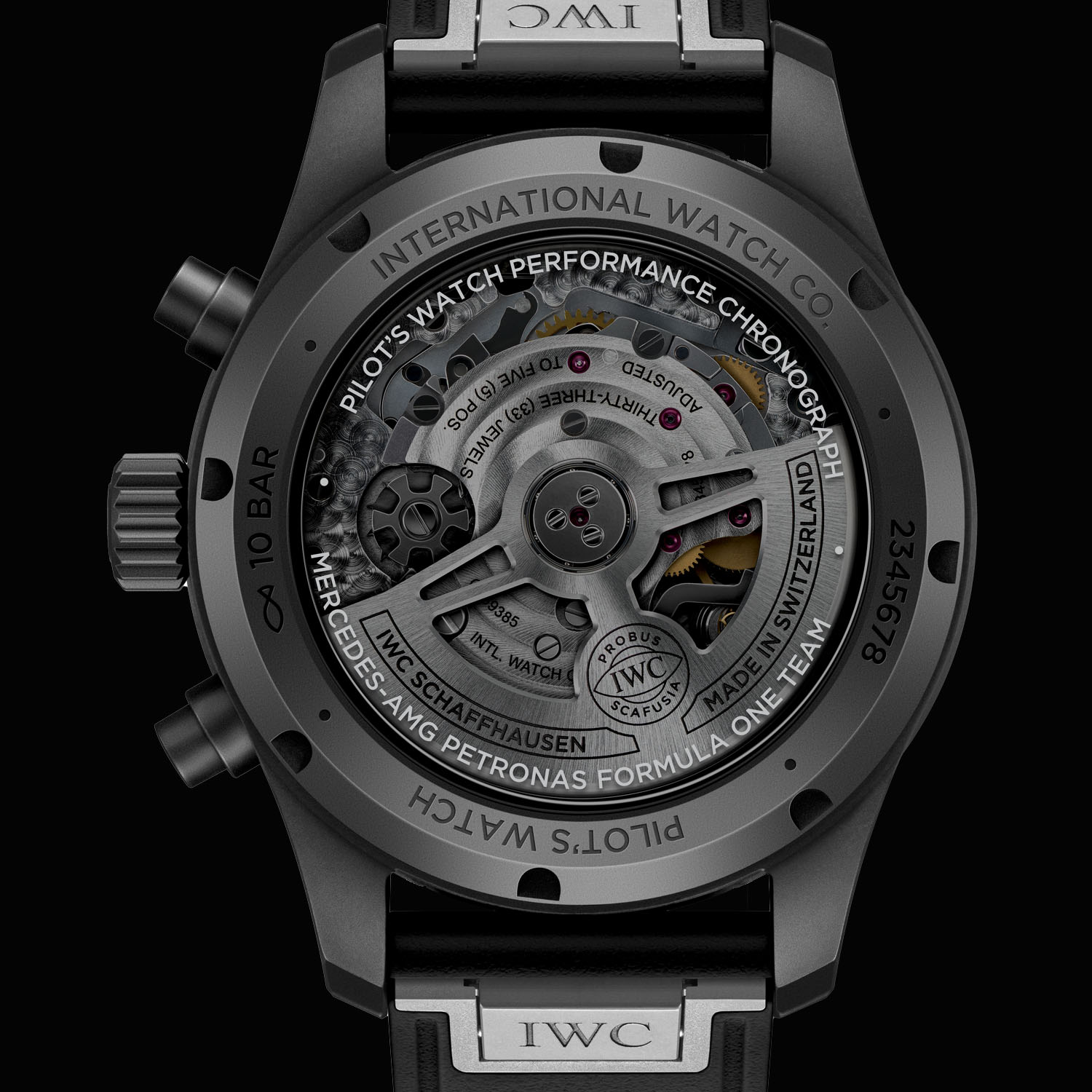 The IWC Pilot’s Watch Performance Chronograph 41 comes with a choice of bracelet or strap. The titanium AMG editions can be chosen with a matching H-link, brushed and polished titanium bracelet or a black rubber strap. The AMG Petronas F1 edition can be worn either on a matte Ceratanium bracelet or a black rubber strap. All options are equipped with a quick-change system.