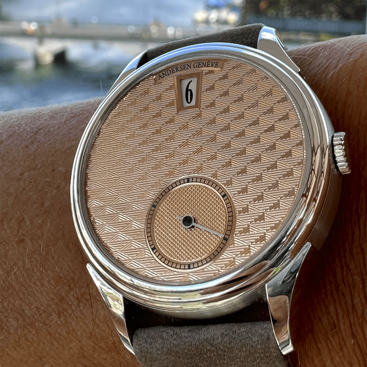 While many will be familiar with his countless (and highly desirable) takes on the world time complication, Svend Andersen has masterminded many more watches over his long career. In 1995, Svend Andersen was commissioned to create a watch with jumping hours combined with a minute repeater. It subsequently became requested in a number of unique pieces and later gave birth to one of the most recognisable Andersen Genève watches, the Jour & Nuit. This ingenious design, which used the Jumping Hours module to carry a double-ended jumping 24-hour hand, led to a series of watches made for Cartier in 1998, as well as editions under its own name. In recent years, Andersen Genève took the Jumping Hours complication to a new level with the launch of a dedicated watch, where the empty space of the dial, inherent to watches with such minimalist displays, was filled with motifs obtained through refined métiers d’art such as guilloché.