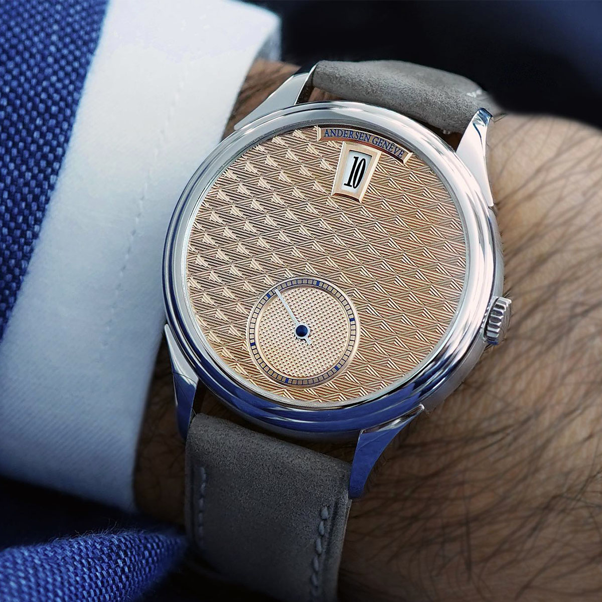 Worn on a light grey hand-stitched suede strap, the Andersen Genève Jumping Hours Rising Sun Edition is a limited edition of 50 pieces exclusively for the Japanese market (even though I’m sure the brand can help if you’re in Europe or America). It is priced at CHF 48,800. For more details, please visit www.andersen-geneve.ch.
