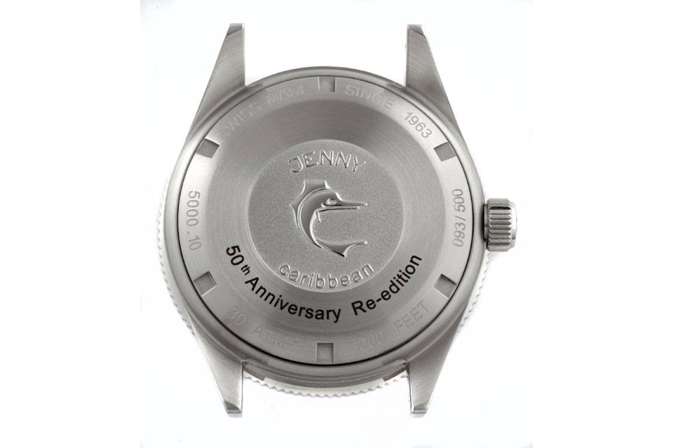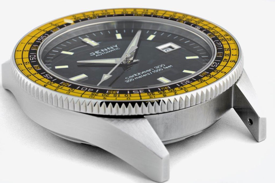 Jenny Watches is among the very few Swiss watch brands that are independent and still family owned. Members of the family who witnessed the early days of Jenny & Cie S.A. have actively contributed to the re-launch of the brand in 2012. The re-launched Caribbean 300 is a faithful re-edition in almost every detail, however there are a few “technical updates” such as the sapphire bezel inlay, however the depth rating is 300 meters and no 1000 meters as its predecessor.