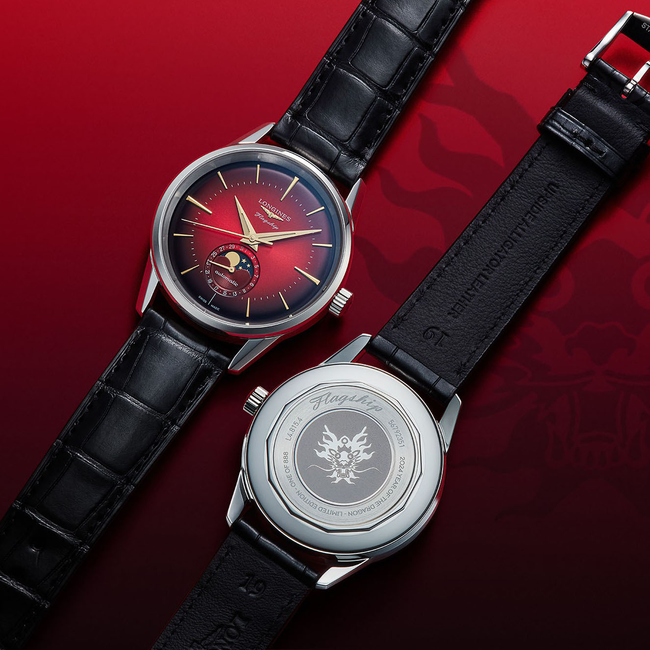 A symbolic red dial and a dragon's head on the caseback mark Longines’ first watch to celebrate Chinese New Year 2024.