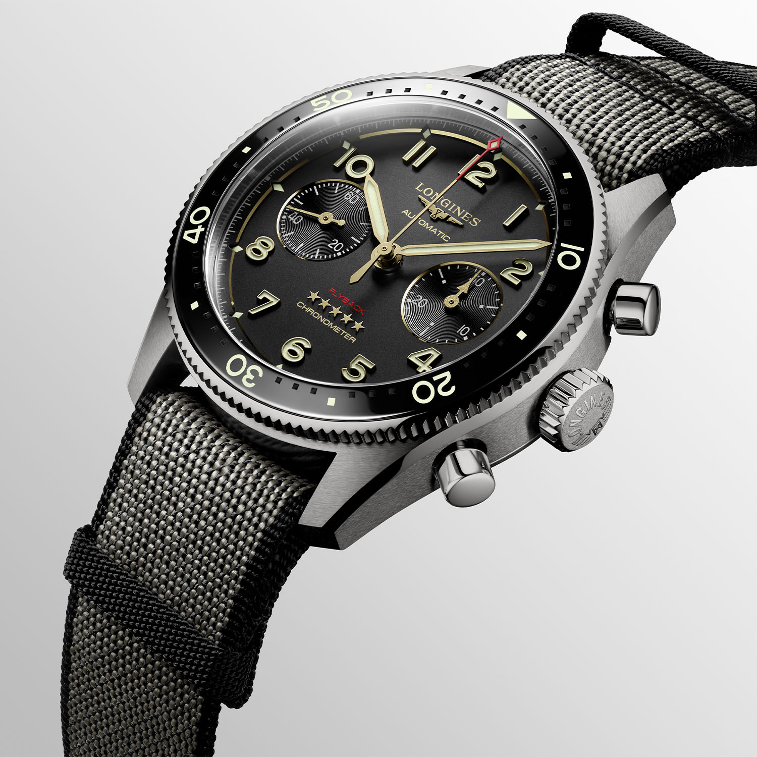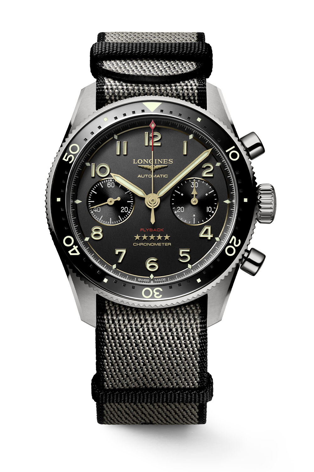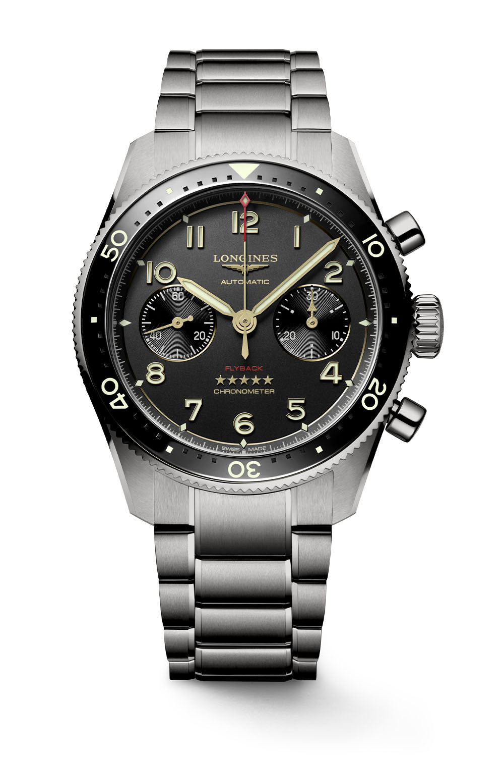 If the Spirit Zulu Time was to be seen as the bigger brother of the classic 3-hand models, the same could be said about the Spirit Flyback next to the classic automatic chronograph. In both cases, we have sportier watches with an external rotating bezel and a more advanced movement. First presented in steel, with a 42mm case and an imposing thickness of 17mm, the Longines Spirit Flyback is the collection’s flagship. This year, and probably for the best considering its dimensions, the watch comes back in grade 5 titanium. Not only will it provide an even sportier and more instrumental look to this watch, thanks to the darker tone of titanium, but it will make it far more comfortable on the wrist, titanium being 40% lighter than steel.