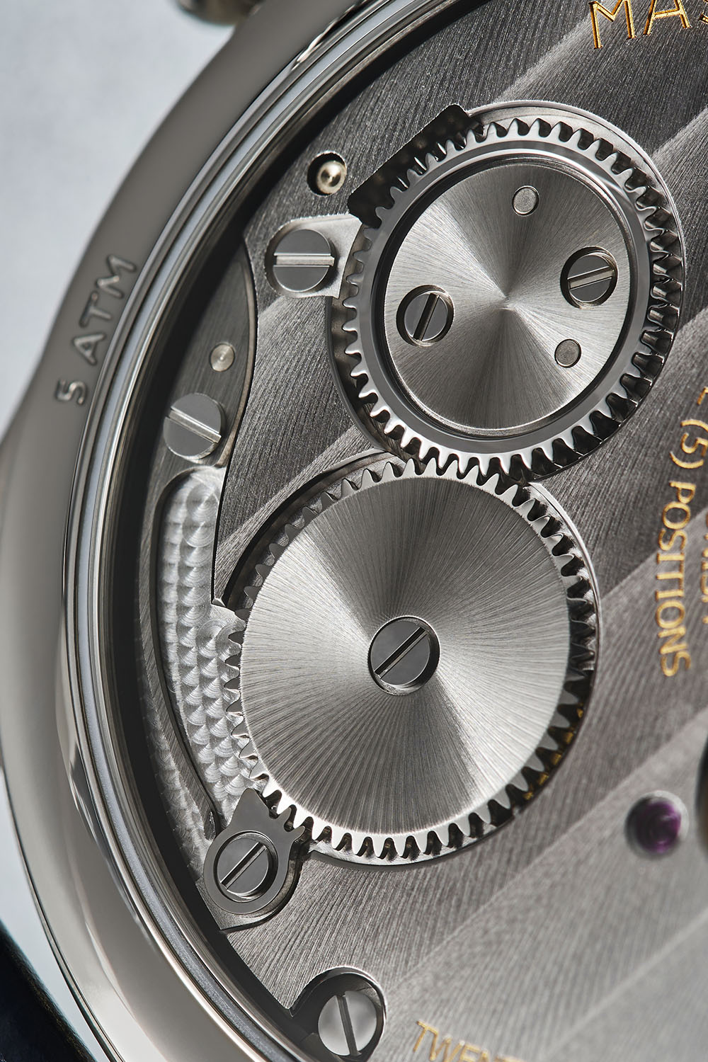 Mechanically, we’re talking about a strong evolution over the previous releases of Massena LAB, the Magraph inaugurating the studio’s first proprietary movement. Development has been done under the guidance of Rau?l Page?s. In order to retain reasonable costs of R&D, the movement starts from the gear train calculation, assortment and kinetic chain of a 7750. The rest is entirely custom-made, with a new position for the small seconds (now at 6 o’clock), newly designed plates and bridges, and of course, only three hands running on the dial.