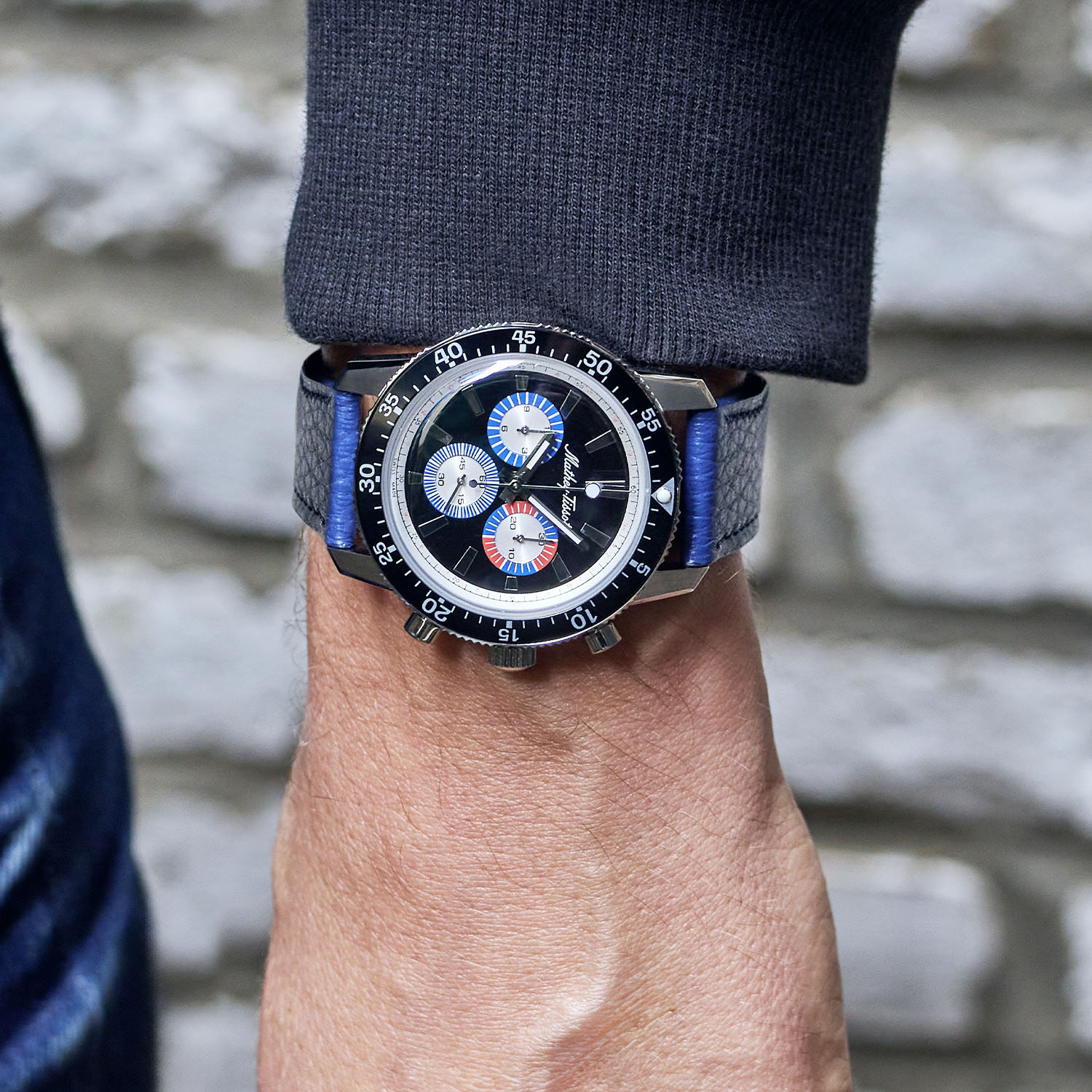 The Mathey-Tissot x Massena LAB Chronograph ’68 comes on a blue calfskin strap with a stainless steel buckle. It retails for USD 1,495 and is available exclusively at Massenalab.com, where it can be purchased today at 10 a.m. EST with 99 watches scheduled for delivery in 2023.