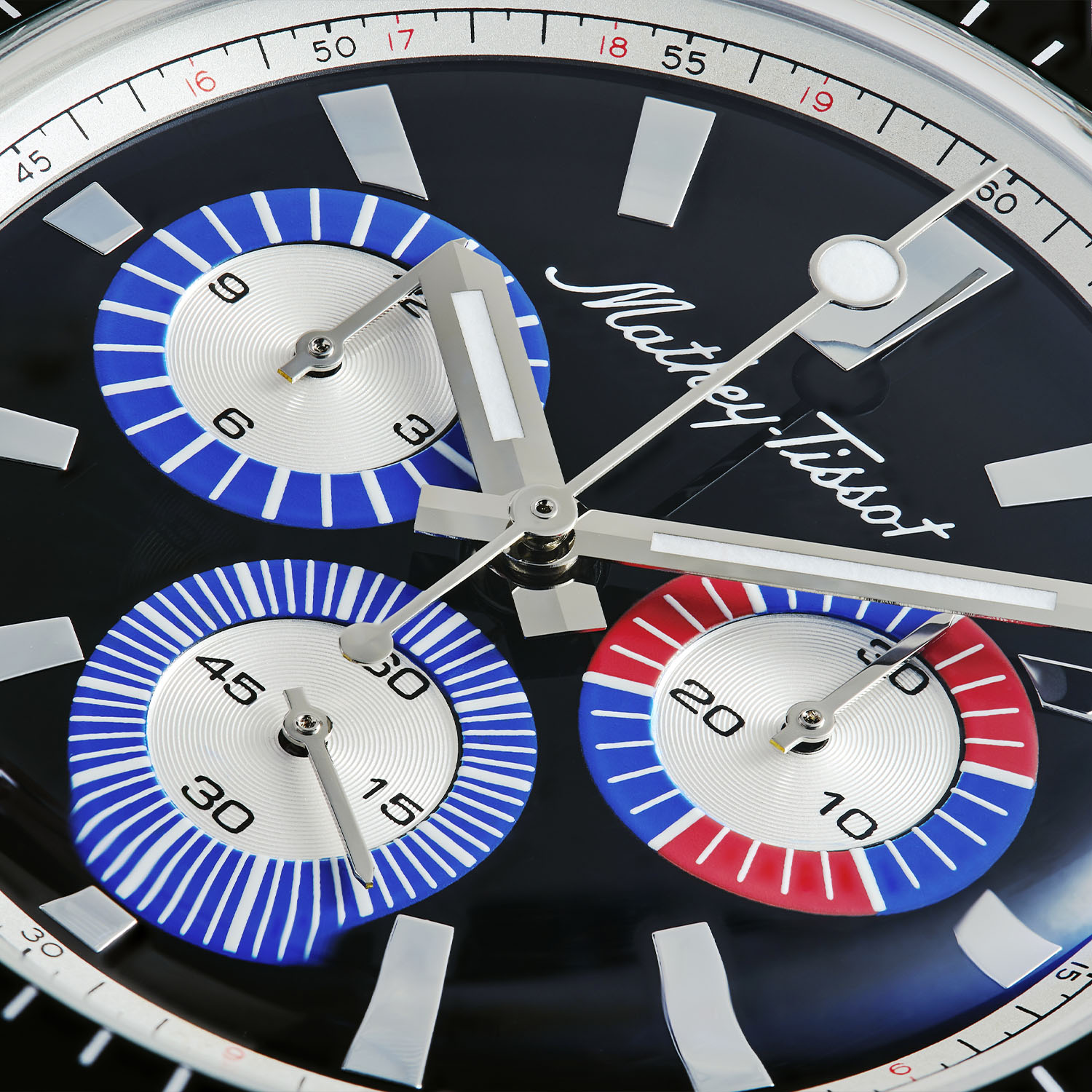 The other part of the equation corresponds to the not-so-well-known but reputable Swiss watch brand, Matthey-Tissot, not to be confused with the giant Tissot. Founded in 1886, Mathey-Tissot specialised in repeater watches, followed by precision prize-winning chronographs. Commissioned to supply the US Army Corps of Engineers with chronographs during WWI, one of the most fascinating chapters in the brand’s history pertains to the production of Type 20 pilot’s chronographs for Breguet destined for the French Ministry of Defence.