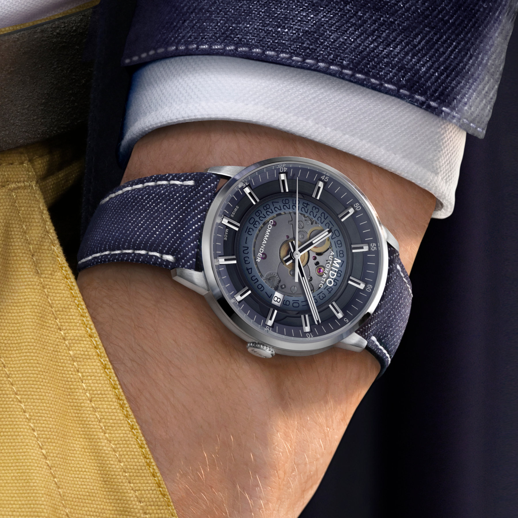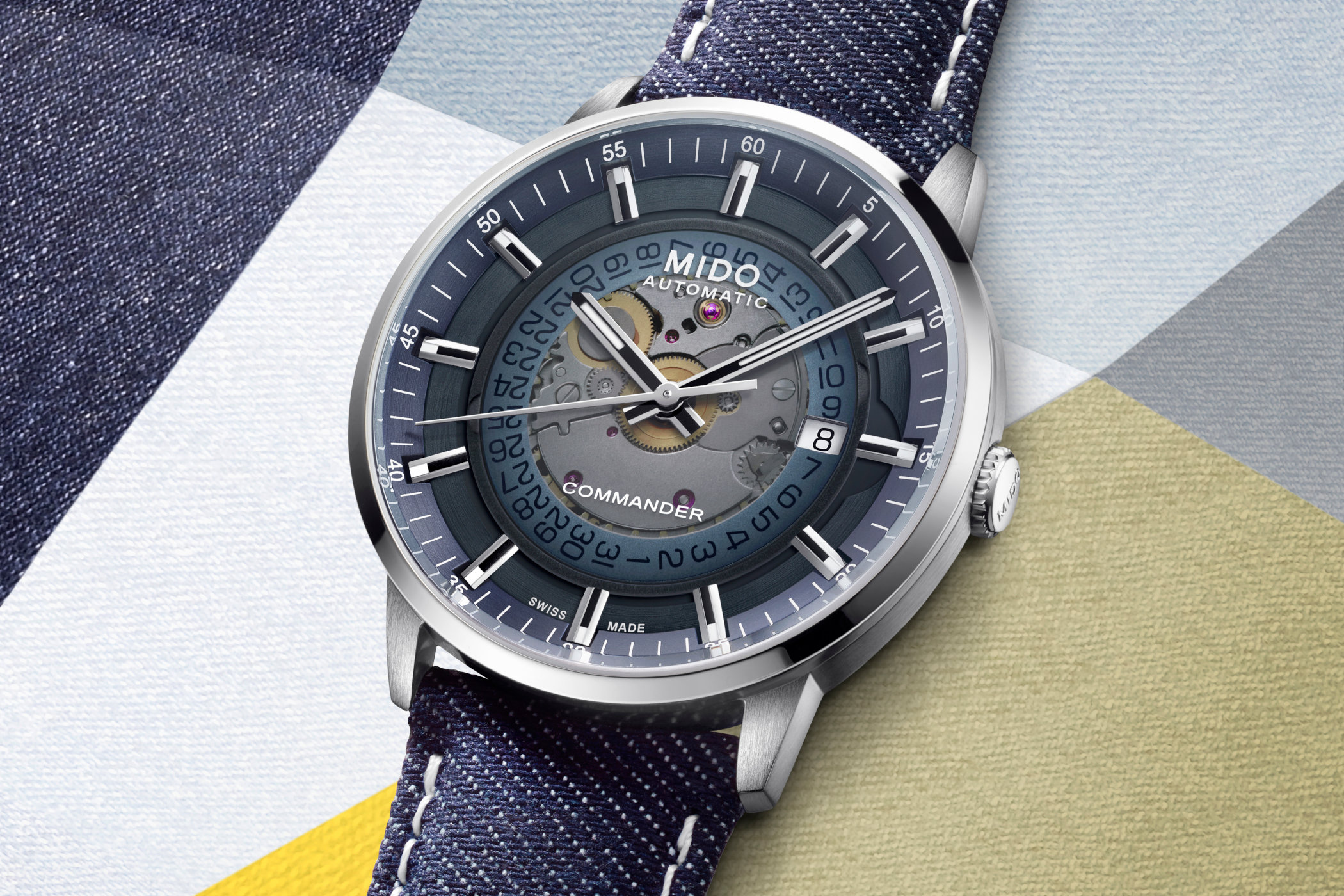 Mido’s cornerstone Commander collection can boast that it has been in continuous production since 1959. Naturally, fashions come and go, and to keep up with the latest trends in watchmaking, the Commander quite literally went commando revealing its Calibre 80 movement through a smoked acrylic dial in 2020. This summer, the Commander Gradient reappears with a cool blue gradient dial and a casual denim strap.