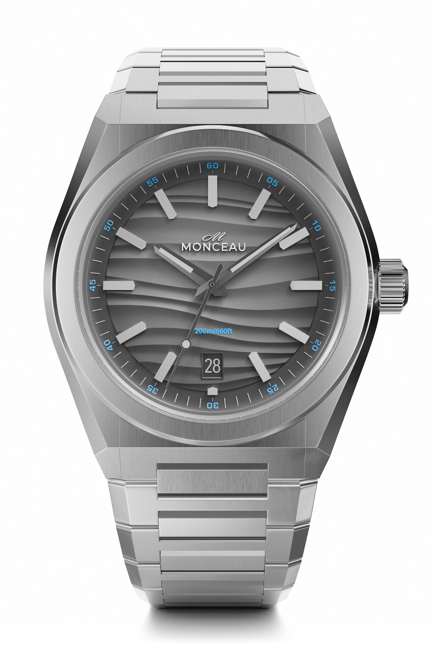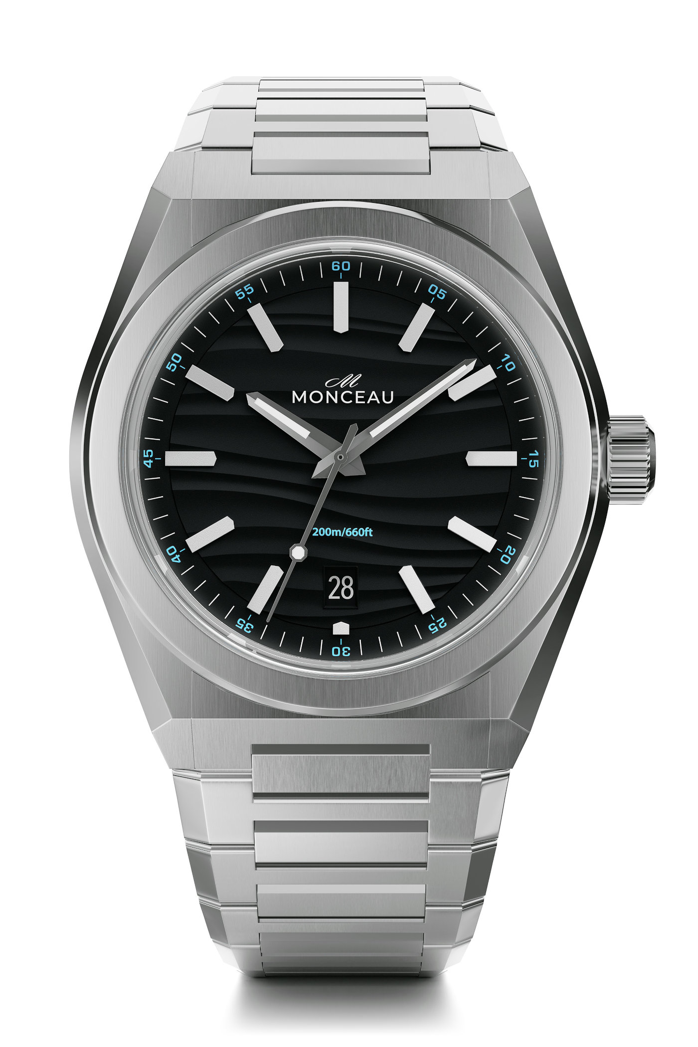 The Monceau Model 01 comes with a brushed and polished integrated stainless steel bracelet with a folding clasp that incorporates a sliding micro-adjustability system and removable end-links. The H-shaped links are faceted to complement the profile of the case. It will be launched on Kickstarter from tomorrow, 30 May 2025, with Early Bird prices starting at GBP 599 – EUR 720 – USD 745, and a future retail price of GBP 849 – EUR 999 – USD 1,049 following the conclusion of the campaign. Upon the launch, two strap options will also be offered for the Model 01.