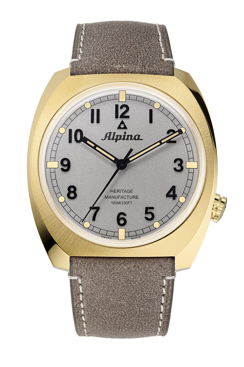 Both 2022 editions of the Alpina Startimer Pilot Heritage Manufacture are worn on a brown calfskin leather strap with off-white stitching and will be limited to 188 pieces each. Prices are EUR 2,850 for the blue edition and EUR 2,950 for the gold-plated model. For more details and online orders, please visit alpinawatches.com.