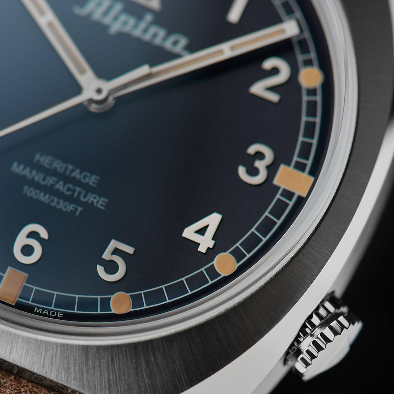 First and foremost, we need to talk mechanics. It’s not how you usually expect an article about Alpina to begin, since the brand often relies on classic automatic movements from Sellita – a decision calibrated to offer robustness and contain prices. This is not the case with the Startimer Pilot Heritage, which has a manufacture calibre and is mostly wound by a very unusual type of automatic system. This system is known as a bumper rotor and it is a rarity in modern watchmaking. While most watches now have 360-degree, often bidirectional rotors, it wasn’t true “back in the day”. Watches could have a bumper rotor, oscillating (in the case of Alpina) at 120 degrees with a small spring, sending the mass back in the opposite direction and facilitating the winding of the movement.