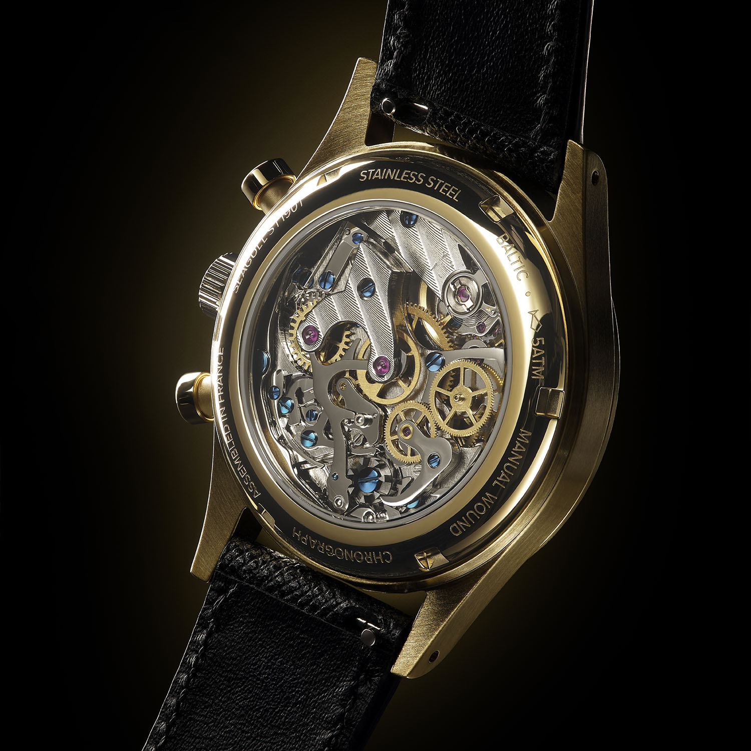 Quick facts: 36mm x 9.9mm – 44mm length – steel case with gold PVD coating – hesalite crystal and see-through back – 30m water-resistant – black glossy dial, gold-PVD Breguet numerals and hands, gilt-like printings – Hangzhou CAL5000A micro-rotor automatic, 42h power reserve, 4Hz frequency – black calf leather strap – available second week of December 2023 – EUR 545 (excl. taxes)