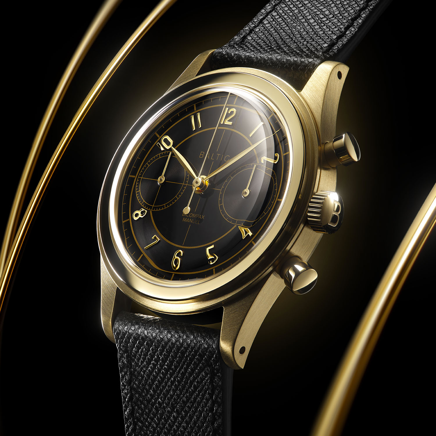 With the Gold PVD capsule, Baltic strengthens its core collection. All three watches are based on existing and successful models, which are retro-styled, rather compact and elegant watches with a twist. Up until now, stainless steel was the only choice available for the MR01, the HMS 002 and the Bicompax 002 (these being the previous generation of this collection, with a slightly larger case than the new 003 models). This year, the brand adds gold… but knowing the brand’s usual price strategy, a PVD coating has been chosen to keep things accessible. And to push the refinement and cool factor to the max, these watches have been given contrasting black dials with gold-coloured accents. A vintage style that is warm, elegant and yet visually striking.