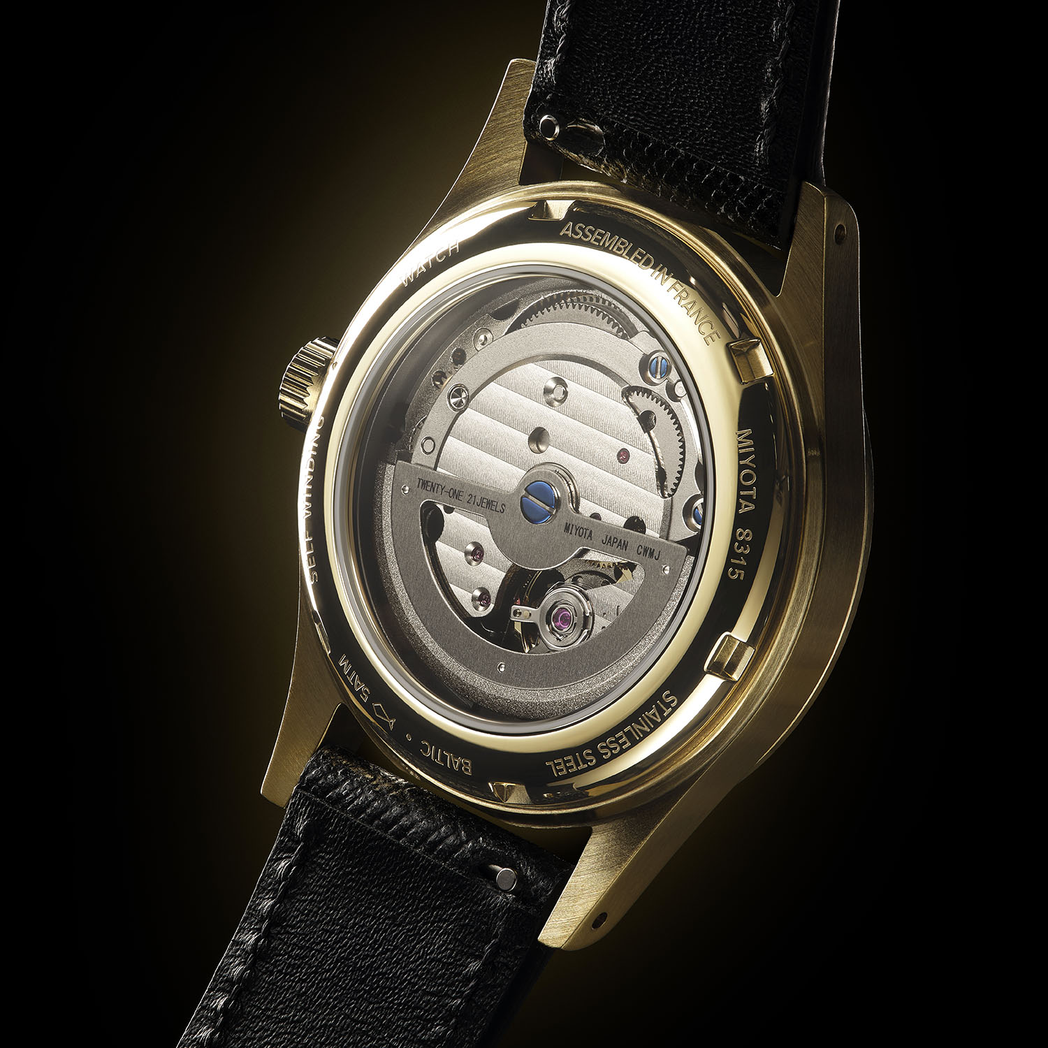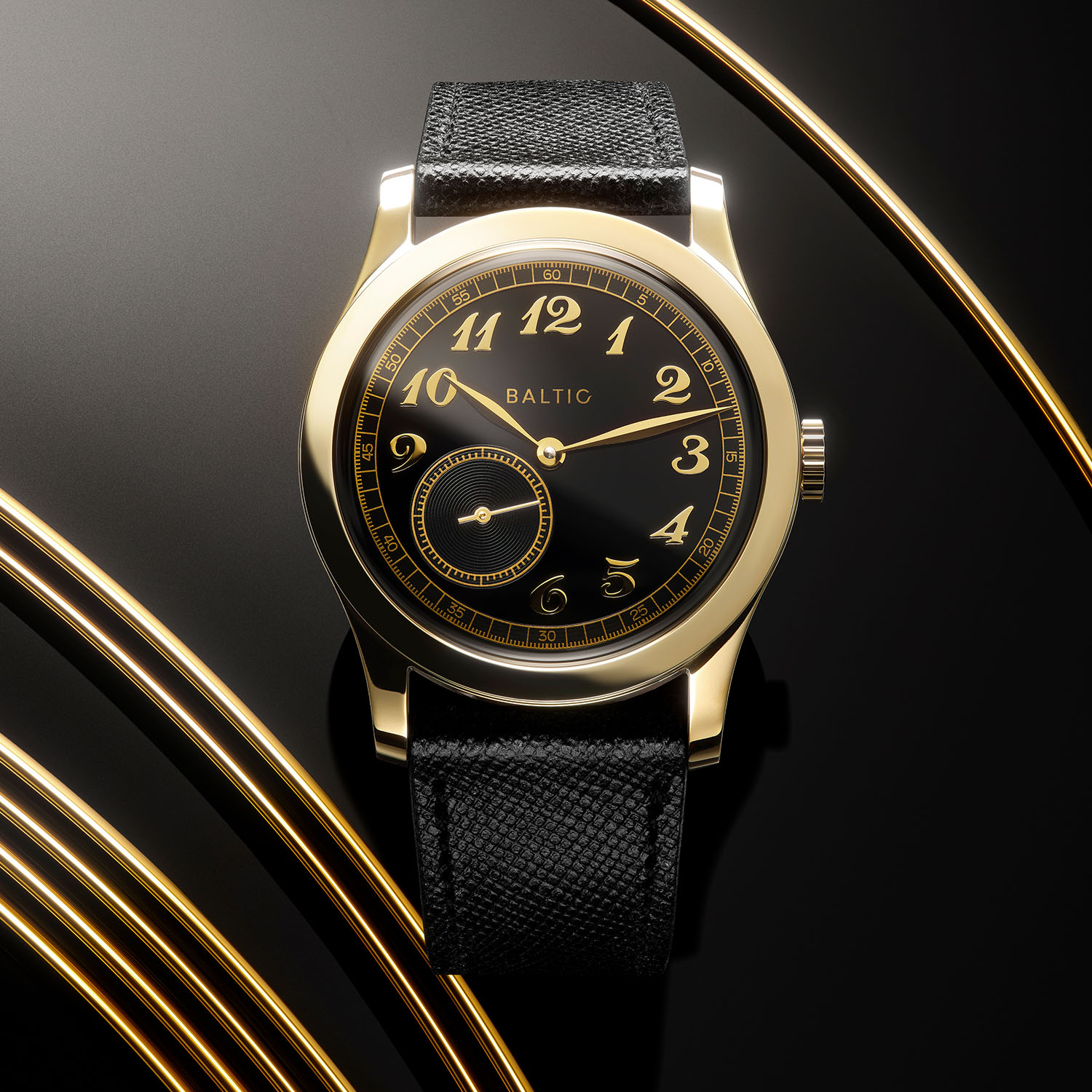 For the occasion, its steel case has been coated in yellow gold PVD while maintaining brushed sides and polished finishings on the lugs and bezel. The other evolution concerns the dial, and it’s not only the black colour. The handsome Breguet numerals and the leaf hands are also gold-coated. The dial has changed compared to the classic editions, as it’s now glossy with gold-coloured tracks – creating the effect of a vintage gilt dial. The Saffiano black strap brings the finishing touch of elegance.